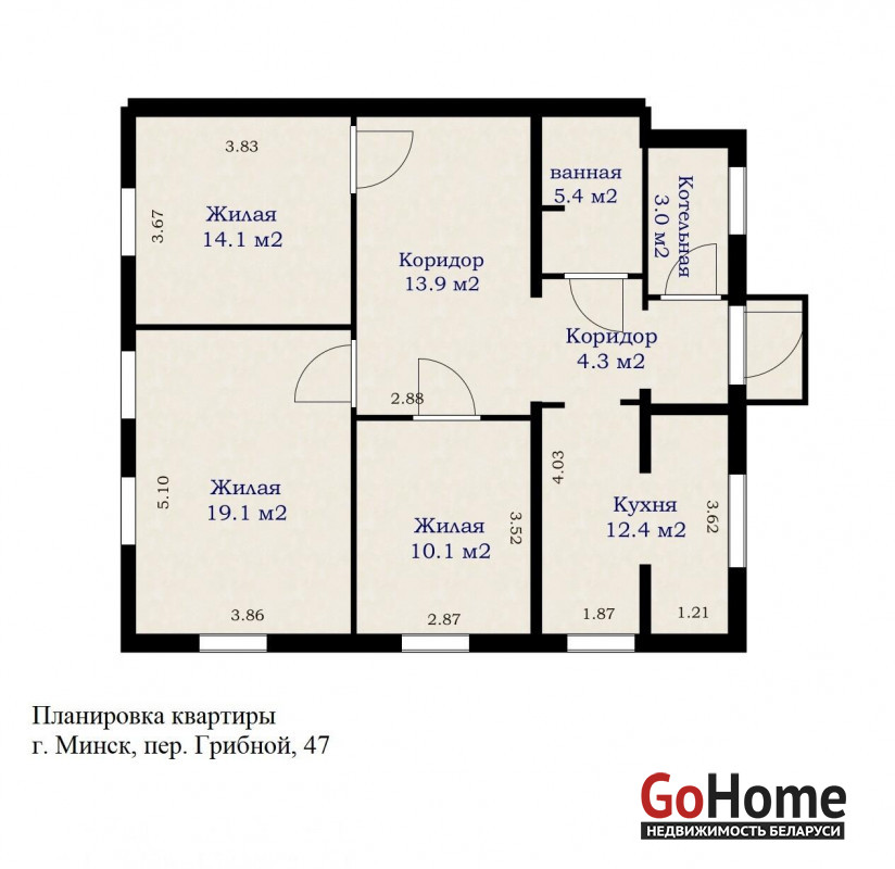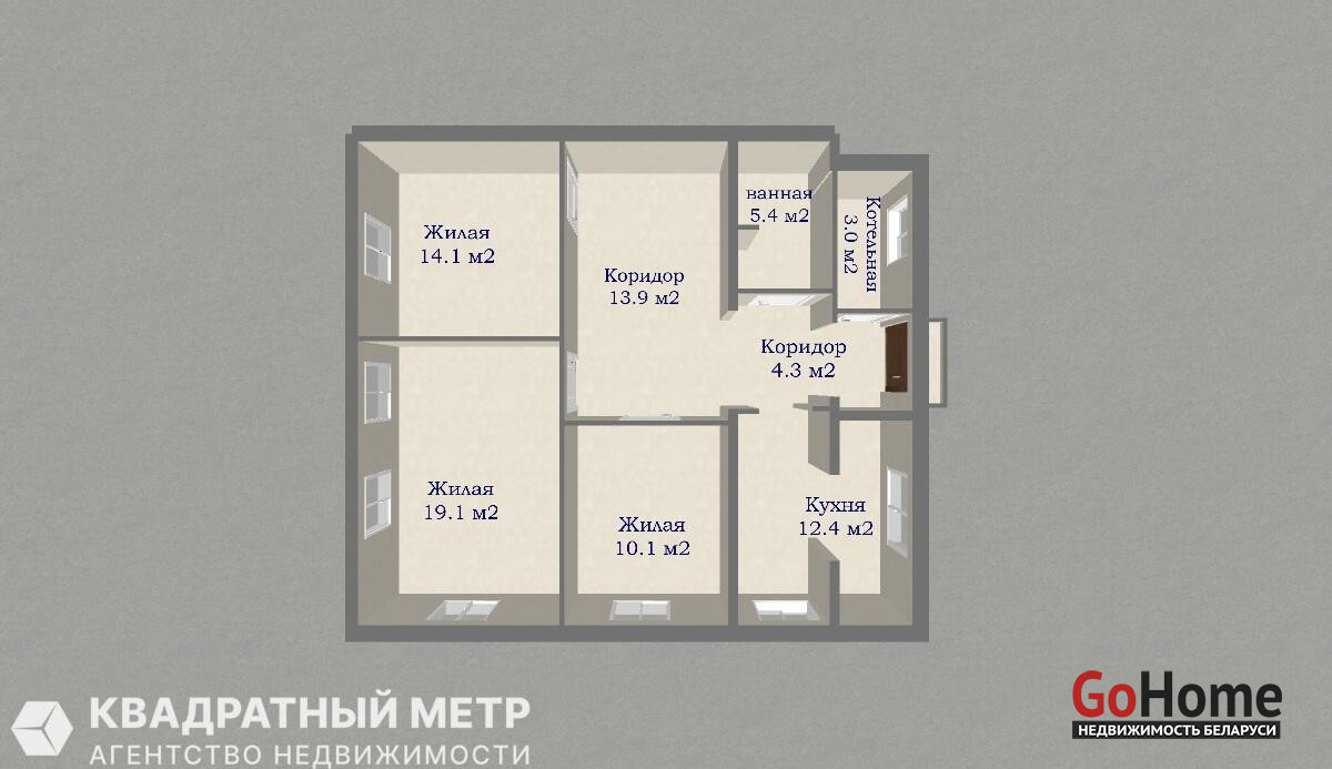 Квартира одноуровневая на 1 этаже. 84,7м. 3 жилых комнаты, большая кухня, санузел, котельная. Стеклопакеты, ламинат, плитка. 2-контурный газовый котел Bosh на подогрев воды и отопление. Кирпич оштукатурен, покрашен.