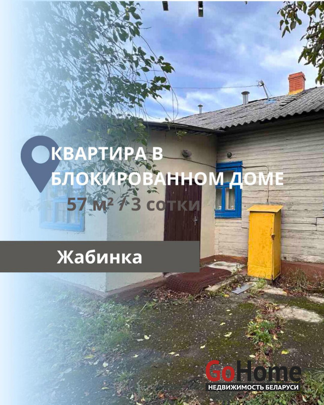 Подписывайтесь на наш instagram @ecrzby для удобного слежения за новыми актуальными объектами.Продается квартира в блокированном доме, расположенная в самом центре г. Жабинка. Общая площадь квартиры составляет 57 м2, из которых жилая площадь – 31,6 м2, а кухня – 11 м2. Дом имеет бетонный фундамент, стены из бруса и шиферную крышу. Квартира находится в жилом состоянии: двери деревянные, окна – ПВХ и деревянные, стены оклеены обоями, полы выполнены из дерева. В квартире имеется электричество, а отопление осуществляется печным способом. Газ проходит рядом с домом, есть возможность подключения к центральному водопроводу и канализации. Квартира располагается на земельном участке площадью 0,03 га (пожизненно наследуемое владение), на котором находятся хозяйственные постройки: сарай и уборная. Удобное расположение квартиры обеспечивает шаговую доступность ко всей необходимой инфраструктуре: магазинам, рынку, банкам, почте, школе и детскому саду. До железнодорожного и автовокзала всего 500 метров, а отличное транспортное сообщение с Брестом позволяет добираться на поездах и автобусах, которые курсируют каждые 15 минут.