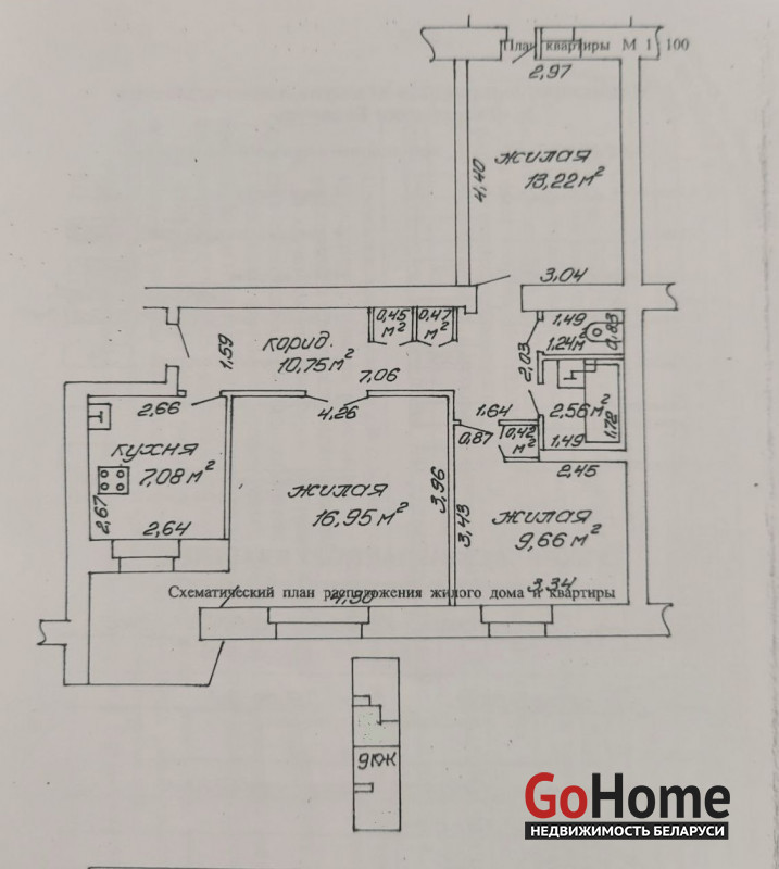 Продаётся трёхкомнатная квартира в тёплом кирпичном доме общей площадью 62,8 кв.м., расположенная по адресу: г.Гомель улица Амурская дом 52.