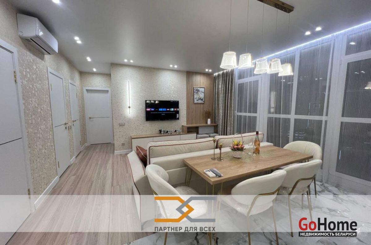 Продается новая 3-комнатная квартира с дизайнерским ремонтом, в основе которого комбинация из натуральных материалов и белого цвета.