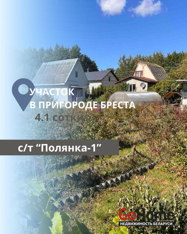 Подписывайтесь на наш instagram @ecrzby для удобного слежения за новыми актуальными объектами.Участок в с/т Полянка-1 Мотыкальский с/с, 6 км от черты г. Брест. Площадь 0,041 га. Земля в частной собственности. Электричество есть. Водоснабжение - центральное. Участок огорожен по периметру. Большая часть участка засажена кустами голубики. К каждому кусту организован капельный полив. Сбор ягод голубики в 2025 г составил более 150 кг. Кусты были посажены в 2023 г. Есть небольшая грядка ремонтантной малины, плодоносит с начала лета до середины осени, ягоды крупные и вкусные. На участке есть хозпостройка, есть беседка. Участок расположен в 100 м от асфальта. Отличное транспортное сообщение с г. Брест, можно добраться на поездах, либо на маршрутках. Участок продается в связи с переездом.