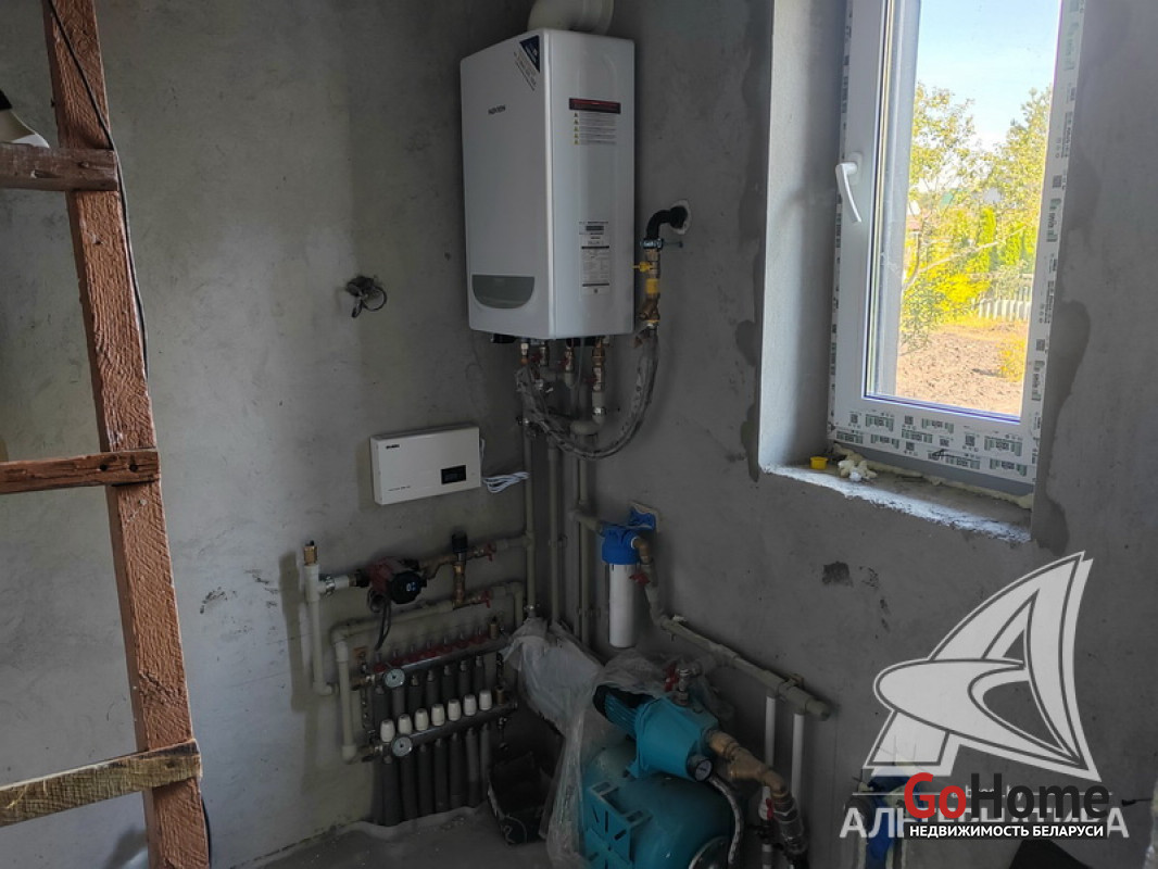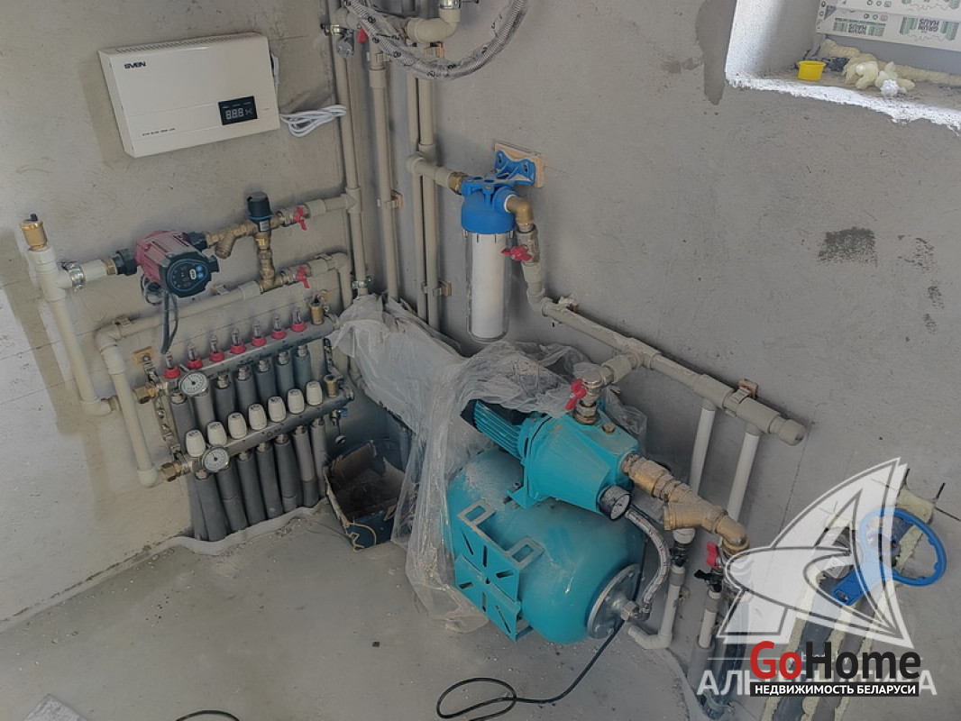 Коммуникации: отопление - газовый котел, газ - централизованный (в доме), водоснабжение - скважина и гидрофор, электричество - централизованное, канализация - автономная.