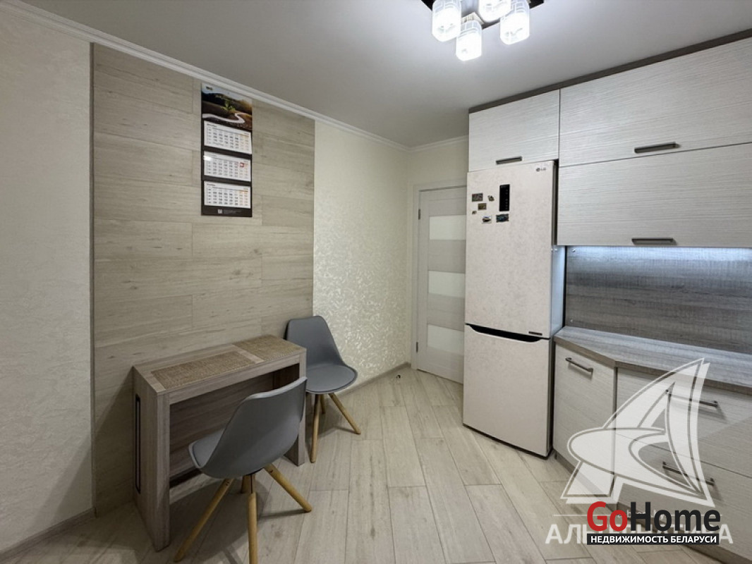 1-комнатная квартира, г. Брест, ул. Морозова, 2016 г.п., 2 / 15 блок + кирпич, 42,9 / 39,7 / 20,2 / 9,9, санузел раздельный, балкон утеплен со всех сторон и застеклен, стеклопакеты с рольшторами, межкомнатные двери - шпон, входная дверь металлическая, потолки - снежка, полы без межкомнатных порогов, (положены на стяжку) - ламинат в комнате, плитка в кухне и прихожей, стены оклеены моющимися обоями, в санузле современная плитка, дополнительная вытяжка санузла выведена на отдельную кнопку выключателя, акриловая шумоизолированная ванна, санузел с подвесной чашей и инсталяцией GROHE, установлены доп фильтры воды на входе и система водоочистки с обратным осмосом на кухне, подача питьевой и основной воды организована на один смеситель,. Имеется домофон и система видеонаблюдения. Вся корпусная мебель выполнена максимально эргономично и функционально от пола до потолка. Подоконники сделаны в цвет основной столешницы. Кухонный гарнитур, варочная индукционная поверхность BOSCH, духовой шкаф BOSCH, очень мощная вытяжка, встроенный шкаф-купе (в прихожей), шкаф-купе (в комнате), встроенный стол и корпусная мебель (в комнате). Квартира с хорошим ремонтом. Чистый подъезд. Пассажирский и грузовой лифты. Дом оборудован пандусом. Дом расположен в глубине двора, двухподъездный вход (с обеих сторон) Во дворе игровая детская площадка, парковка для автомобилей с обеих сторон дома. Рядом школа и сад. С лестничных площадок великолепный вид на весь город от крепости до востока, видны все праздничные салюты города. Рядом магазины Ома, Санта, Евроопт, в пешеходной доступности экотропа идущая до крепости вдоль р.Мухавец. Лот - 251857