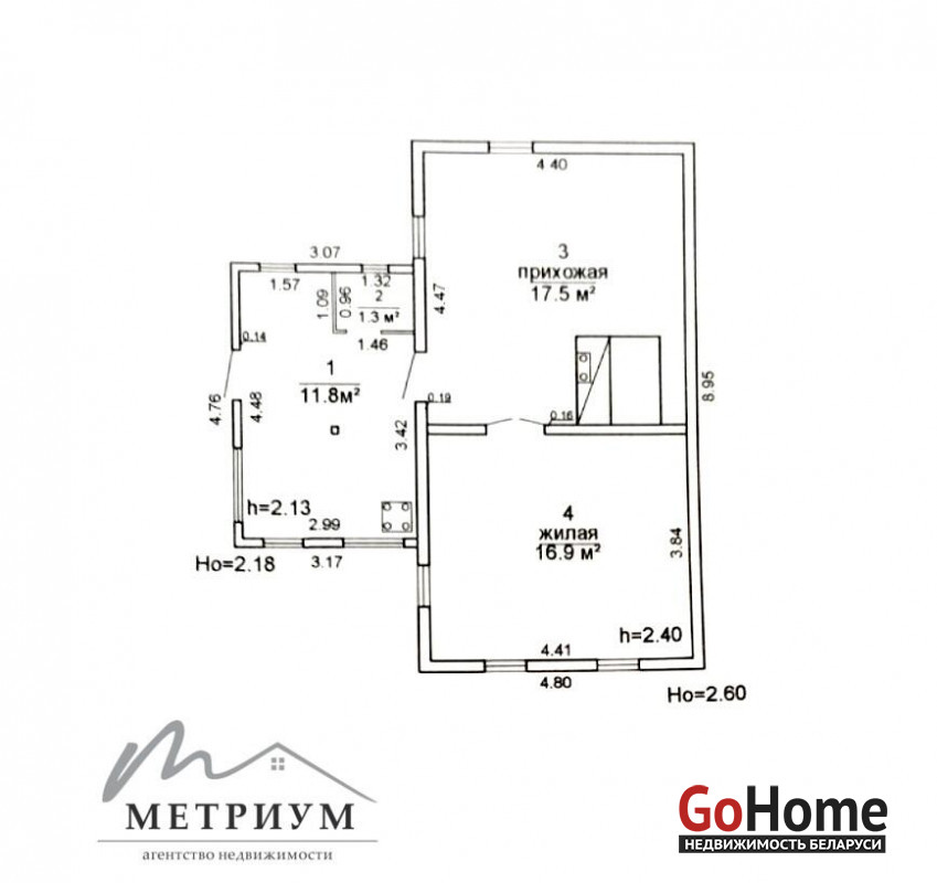 В доме две комнаты 17,5 и 16,9м2, имеется действующая печь на дровах.