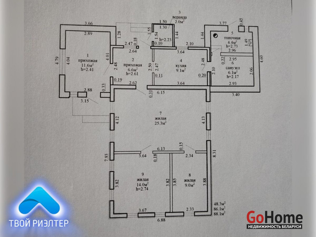 - общая площадь дома – 86,1 м.кв., жилая площадь – 48,3м.кв.