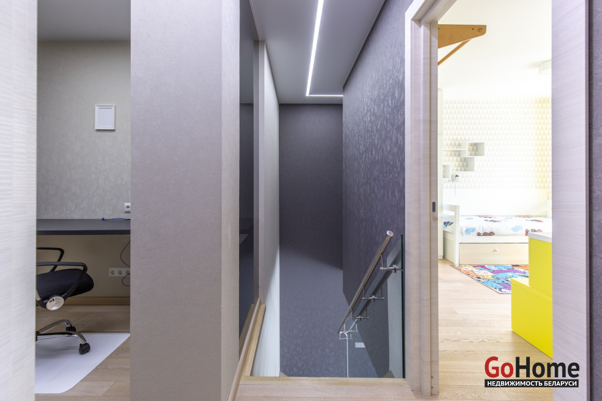 Второй этаж - кабинет, детская (3 спальных места), спальня (двухспальная кровать), санузел с большой угловой ванной.