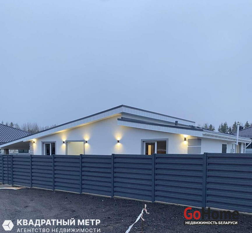 Продается современный одноэтажный дом в элитном дачном поселке "Моя Отрада" д. Закаблуки (д.Старое Село), Минского района, 14 км от МКАД по Раковскому направлению. Площадь дома 123 кв.м. Дом расположен на ровном участке площадью 10 соток в живописном месте, рядом лес, небольшое озеро. Все коммуникации центральные и проведены к дому. К СТ "Моя Отрада" удобные подъездные пути, ночное освещение улиц, круглосуточная охрана.