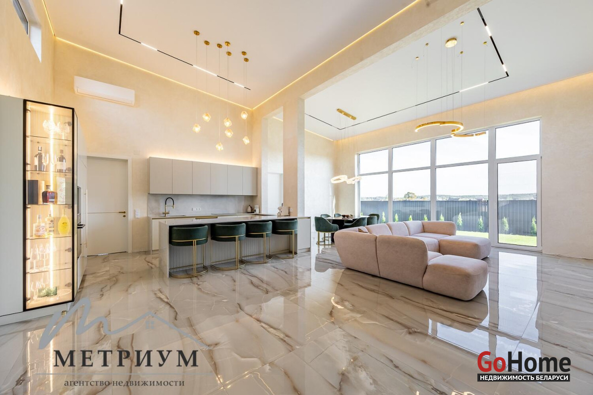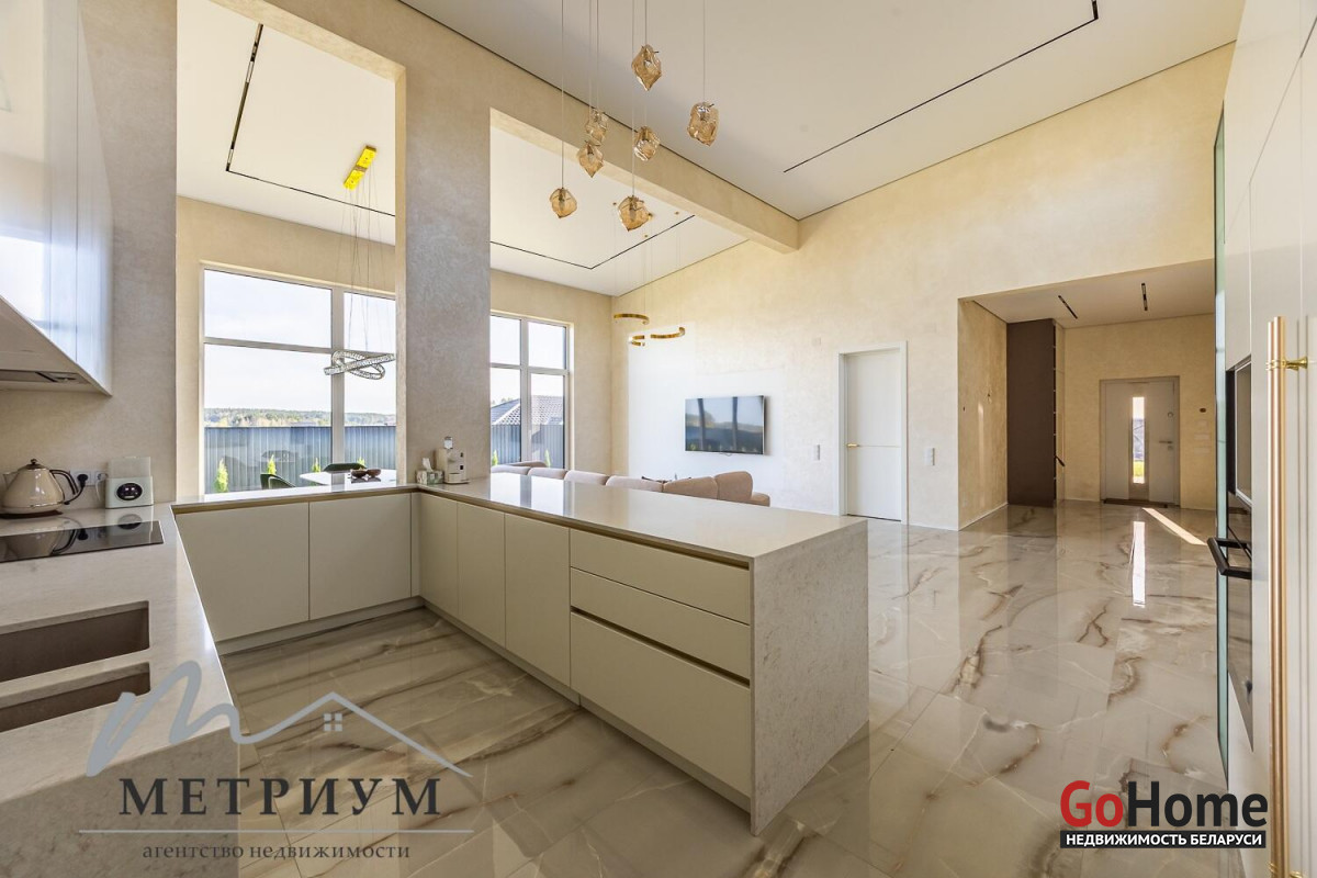 Продается уникальный загородный дом с прекрасным расположением около Острошицкого Городка в деревне Будённого. Всего 15 минут до МКАД по асфальтированной дороге. Комфорт и стиль в каждой детали.Предлагается роскошный одноэтажный дом площадью 183.5 м2, который идеально подойдет для тех, кто ценит природу, комфорт и современные технологии. Построен по новейшим технологиям и обеспечивает отличную теплоизоляцию и долговечность.Вся мебель, техника и отделка — премиум качества.Окружение, которое вдохновляетУчасток – 15 соток с видом на лесной массив. Идеальное место для отдыха и уединения вдали от городской суеты. Идеальный плотный газон с системой автополива по всему участку.Идеальная планировка для комфортного проживания· Общая площадь – 183.5кв.м.· Просторная кухня-гостиная 67,5 м2 с выходом на участок и видом на лесной массив. А огромное панорамное остекление завораживает. Высота потолков от 4.40 до 5.13 м в главной комнате. · Три спальни площадью от 21.4, 23.6, 23.3 полностью оборудованы, из каждой комнаты открывается красивый вид.· Два санузла (один в мастер-спальне) с премиальной сантехникой.· Панорамные окна по всему дому, обеспечивающие максимум света и видов на природу.· Премиальная встроенная техника· Теплые полы по всему дому