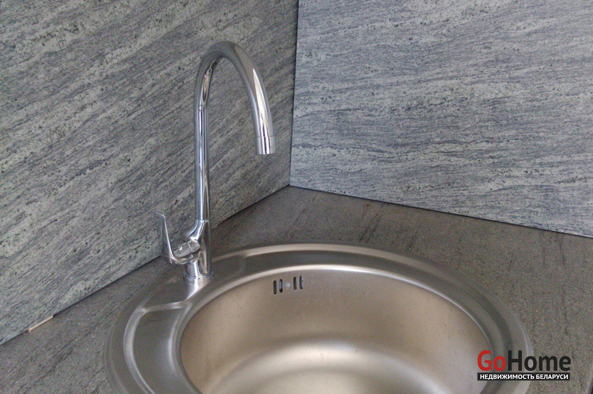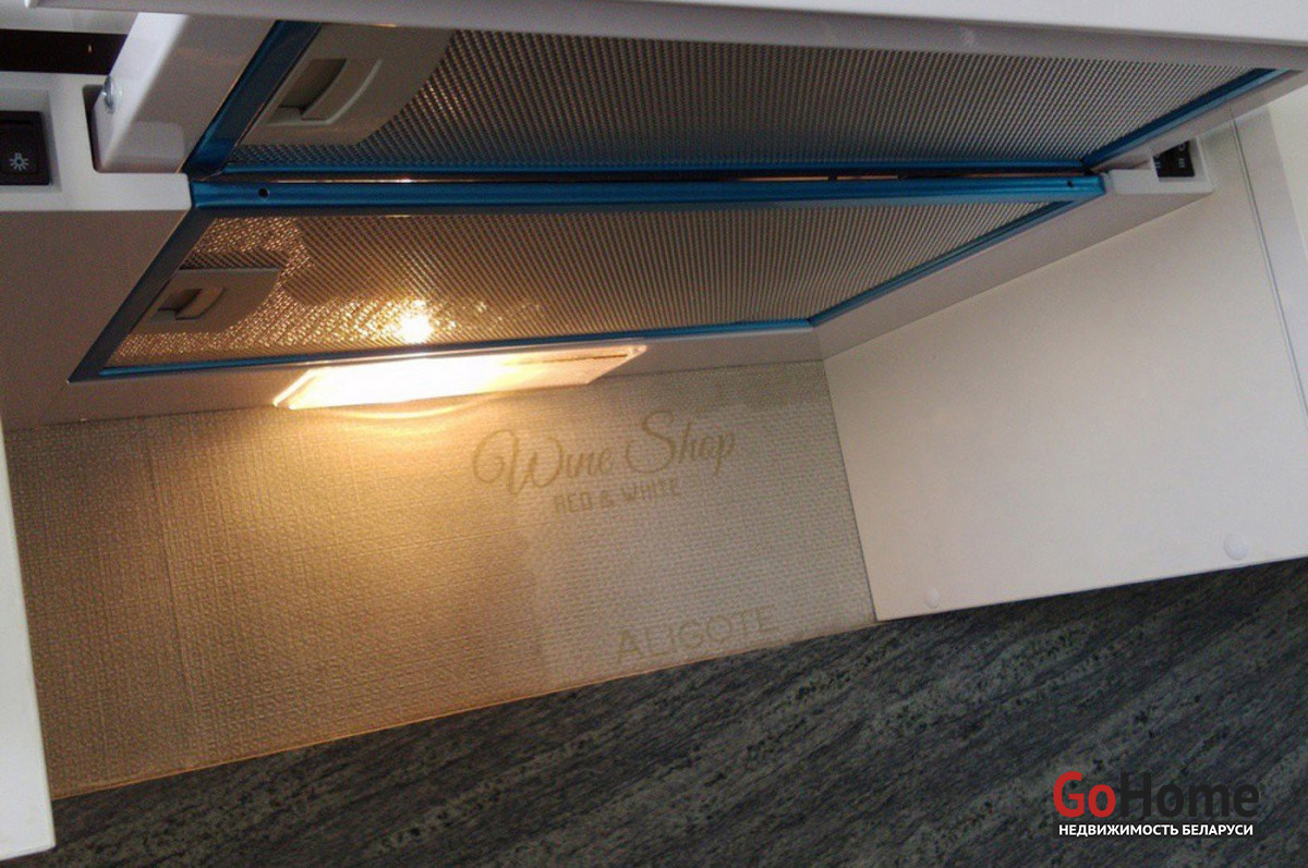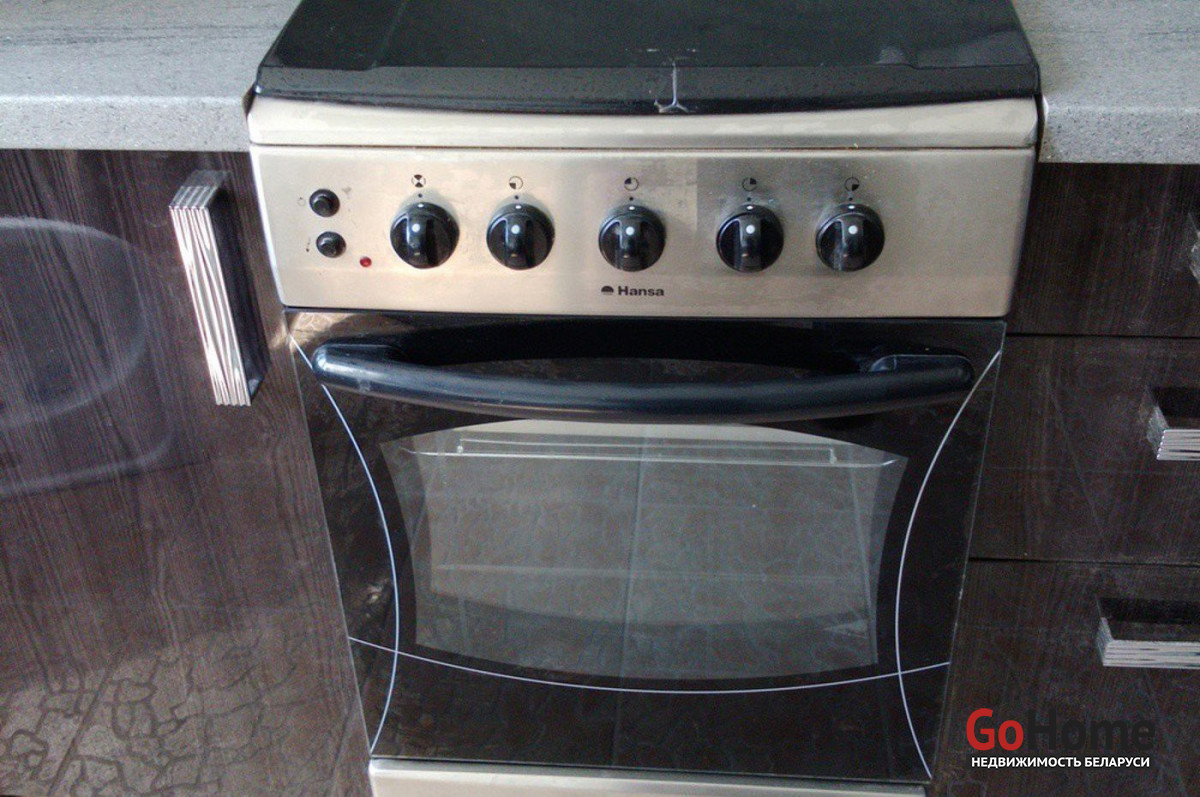 на полу современный кафель и ламинат, в ванной и туалете импортная плитка, новые смесители, импортная плита, вытяжка и новый холодильник.