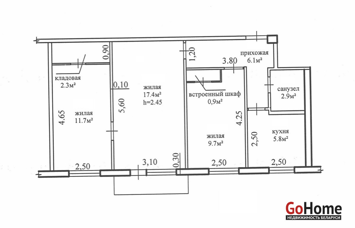 - стандартная планировка квартиры площадью 57 кв.м;