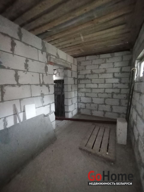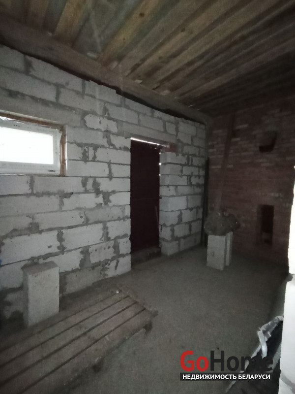 Вода заведена в дом и в баню, разводка по дому не делалась. Сама скважина под домом. Глубина скважины 21м. Из гаража есть выход в дом и в котельную. В котельной в стене, где планируется котел, встроена металлическая труба, которая утеплена пеностеклом.