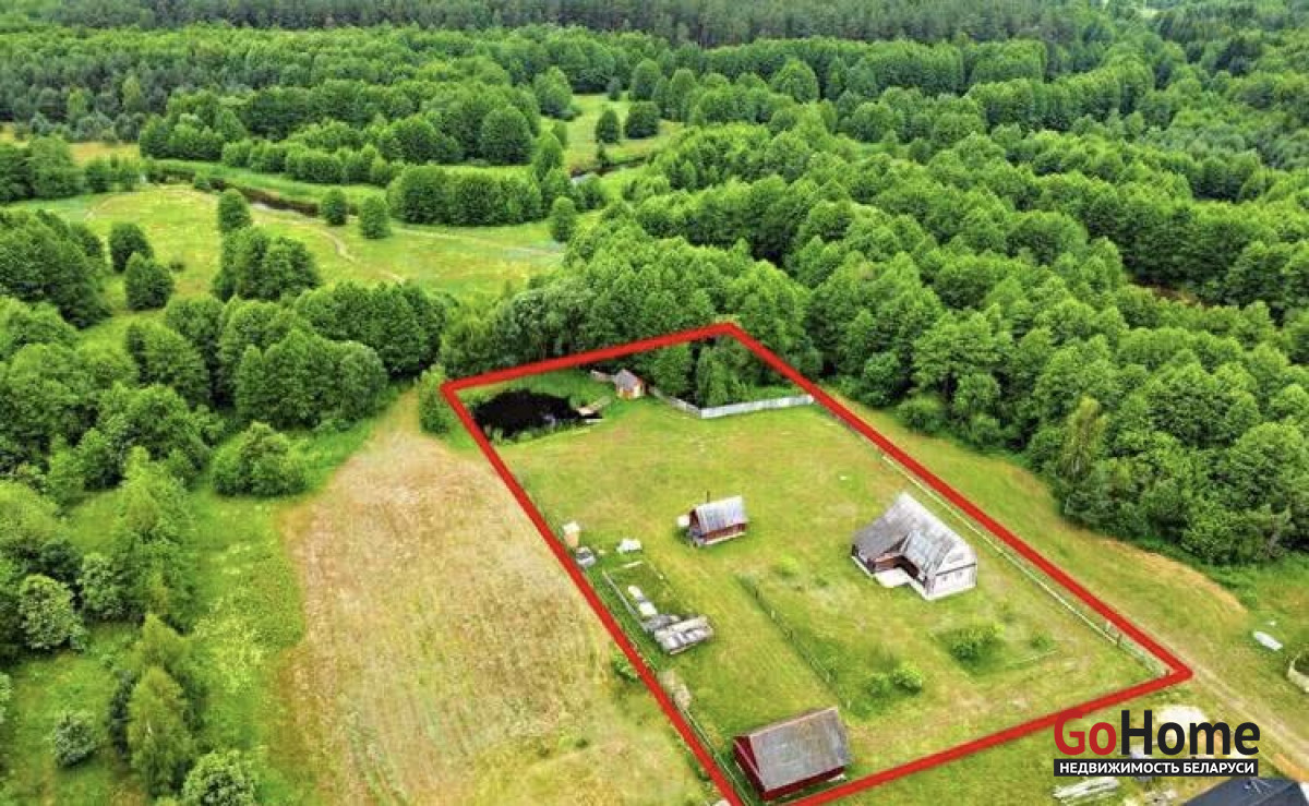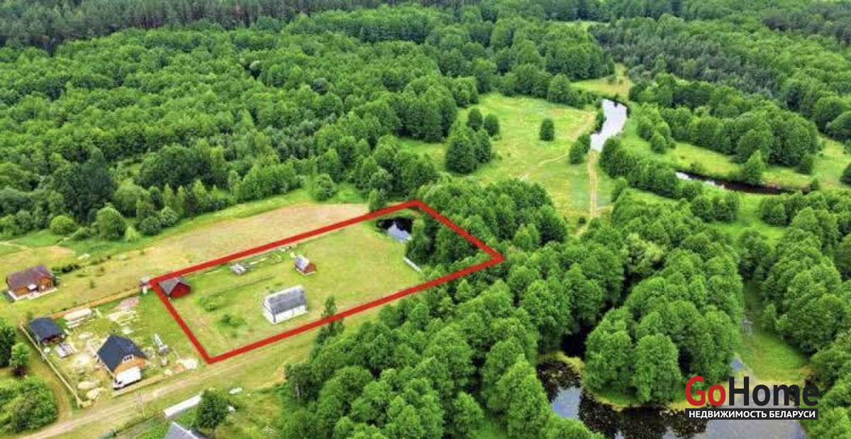 Продаётся застройка хуторского типа: земельный участок 37 соток с загородным домом на берегу реки "Нарочанка", окруженный лесным массивом, первая береговая линия, д.Морги, улица Белорусская 14, Вилейский район, 98 км от МКАД.