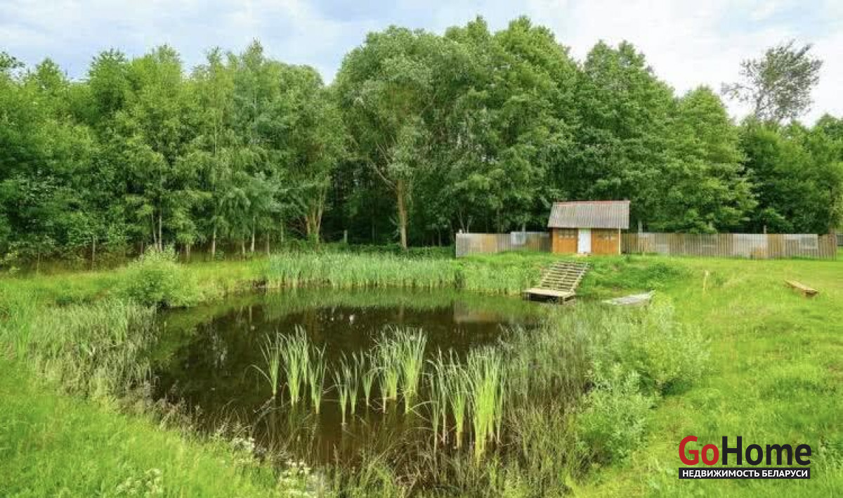 На участке есть баня, пруд с летним домиком, гараж, накопительная емкость для местной канализации.