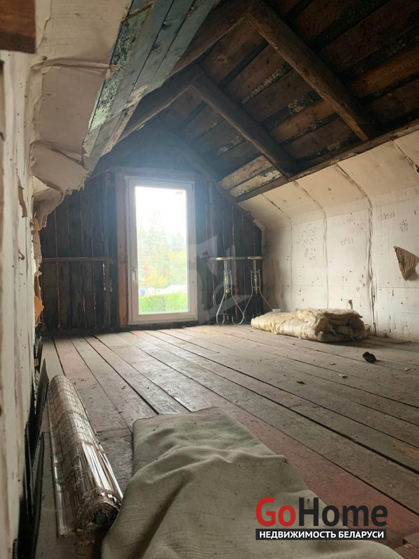 Дом выполнен по каркасной технологии, внутри печь, газовая варочная поверхность, кровля шифер.Внутри дачи две жилые комнаты, кухня и общая комната при входе. Отделка выполнена аккуратно, дом чистый и приятный внутри. Есть лестница на чердак, чердак высотой 2,3 м, можно сделать жилую комнату либо комнату для детей, на чердаке два окна. Чердачное пространство площадью 42 м2.