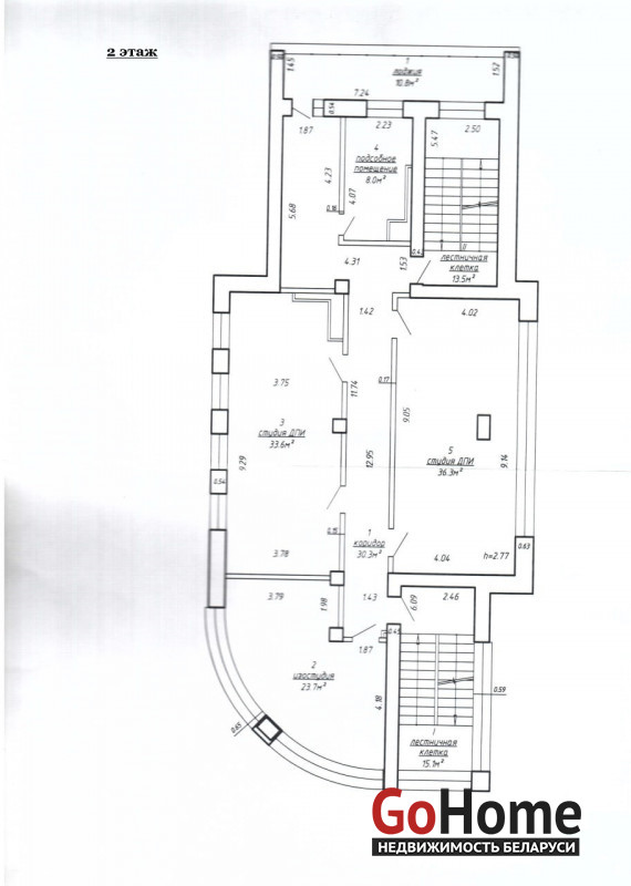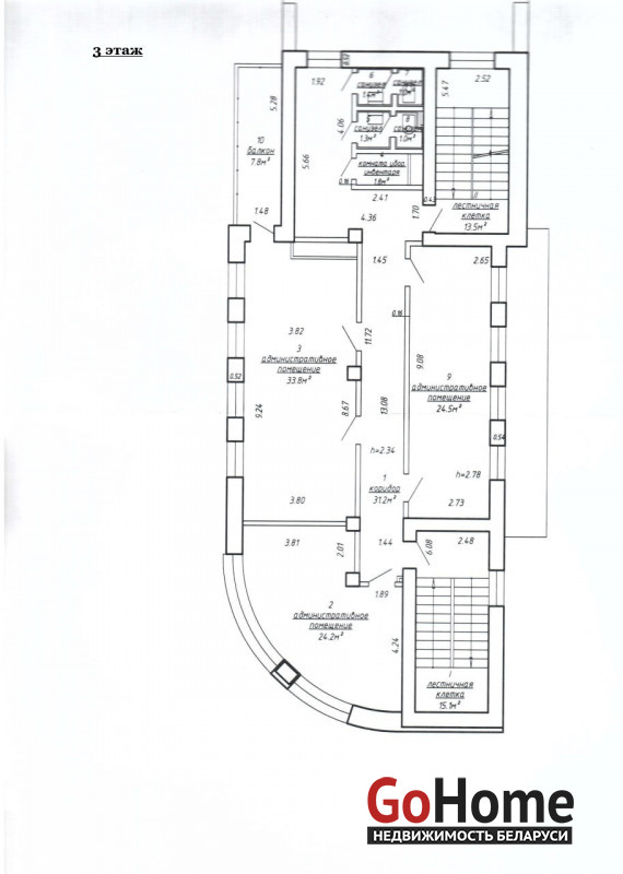 В помещения выполнен современный ремонт. На втором этаже оборудована кухня и лоджия -10,8 кв.м., на 3-ем этаже- балкон 7,8 кв.м., в здании предусмотрено 3 санузла.