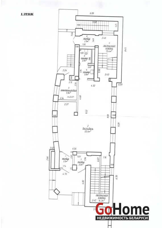 Трех этажное здание с цоколем и эксплуатируемой кровлей. Здание состоит: первый этаж - одно помещение с отдельным входом -55,6 кв.м., на втором и третьем этажах располагается кабинетная система от 24.5 до 55.6 кв.м.