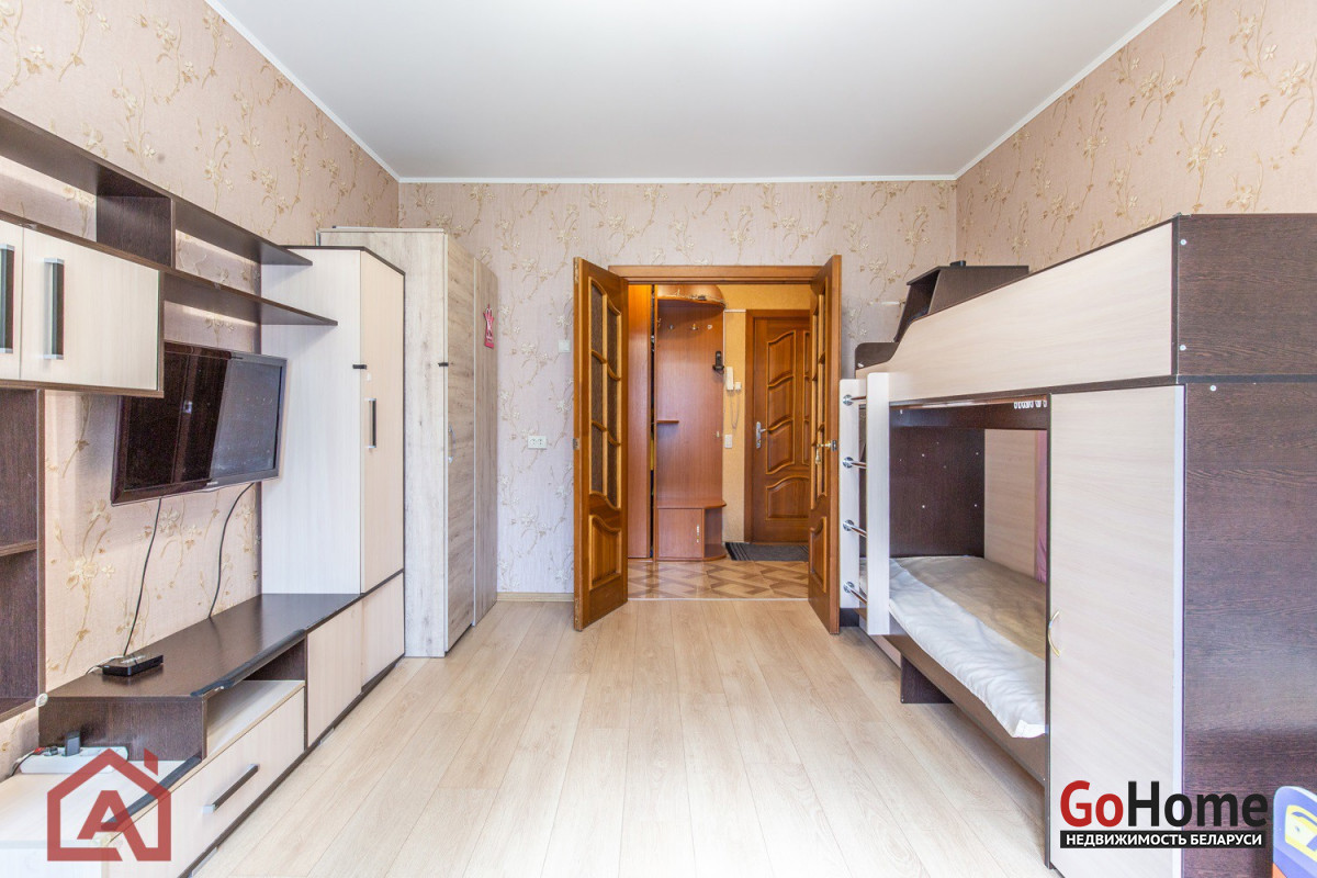 Комнаты достаточно просторные: 16,3м2 - удобной квадратной формы и уютной спальной комнаты - 13,1м2 с застекленной лоджией и спортивным инвентарем впридачу. На окнах стеклопакеты, на полу ламинат.
