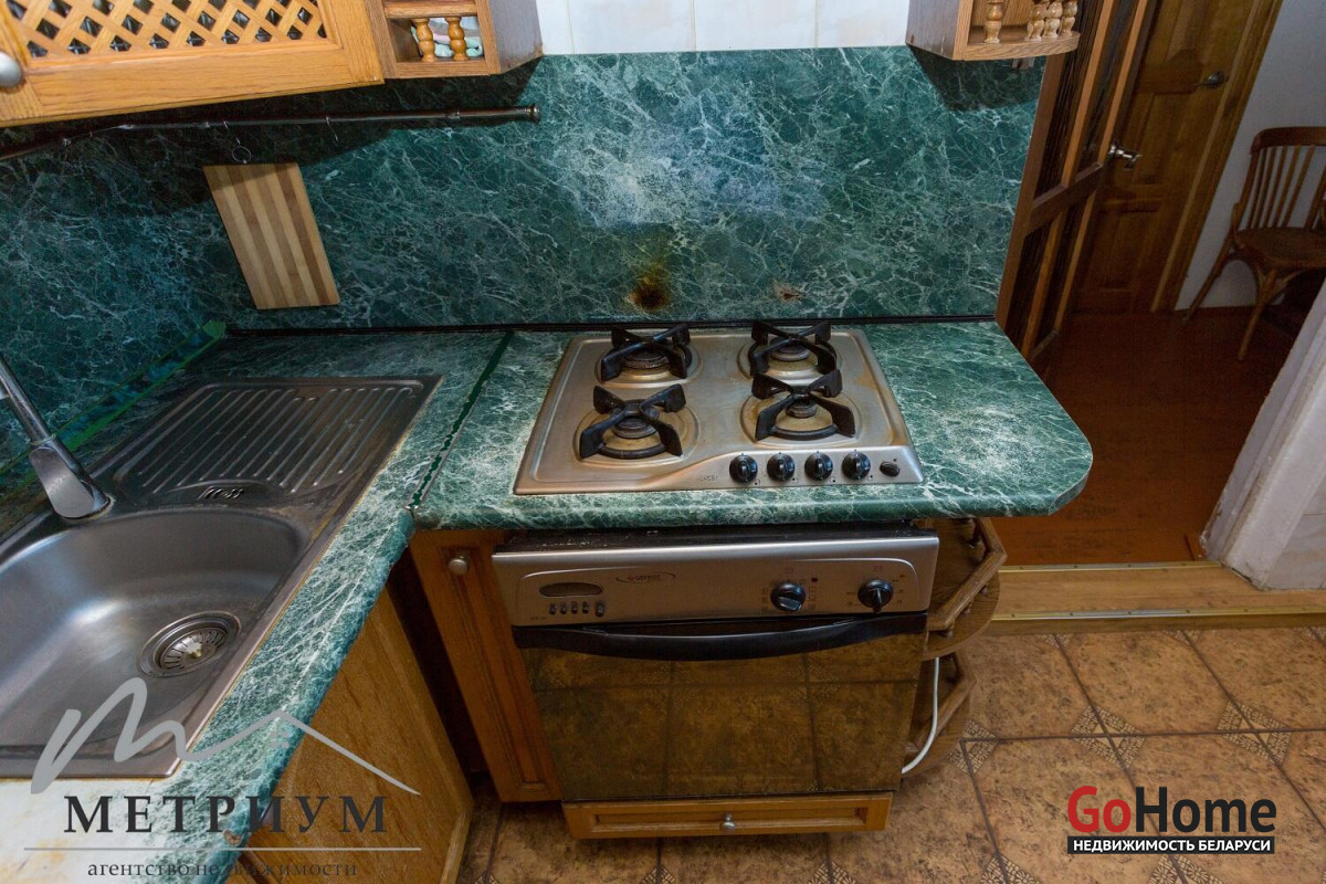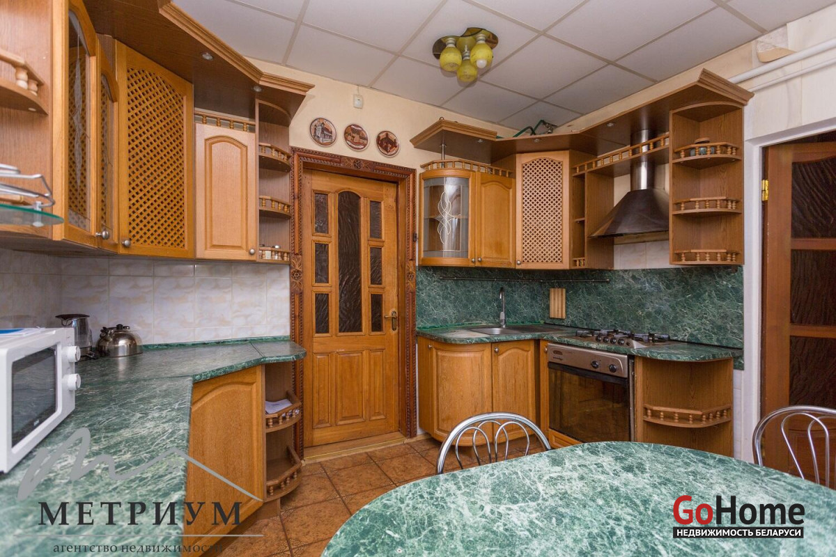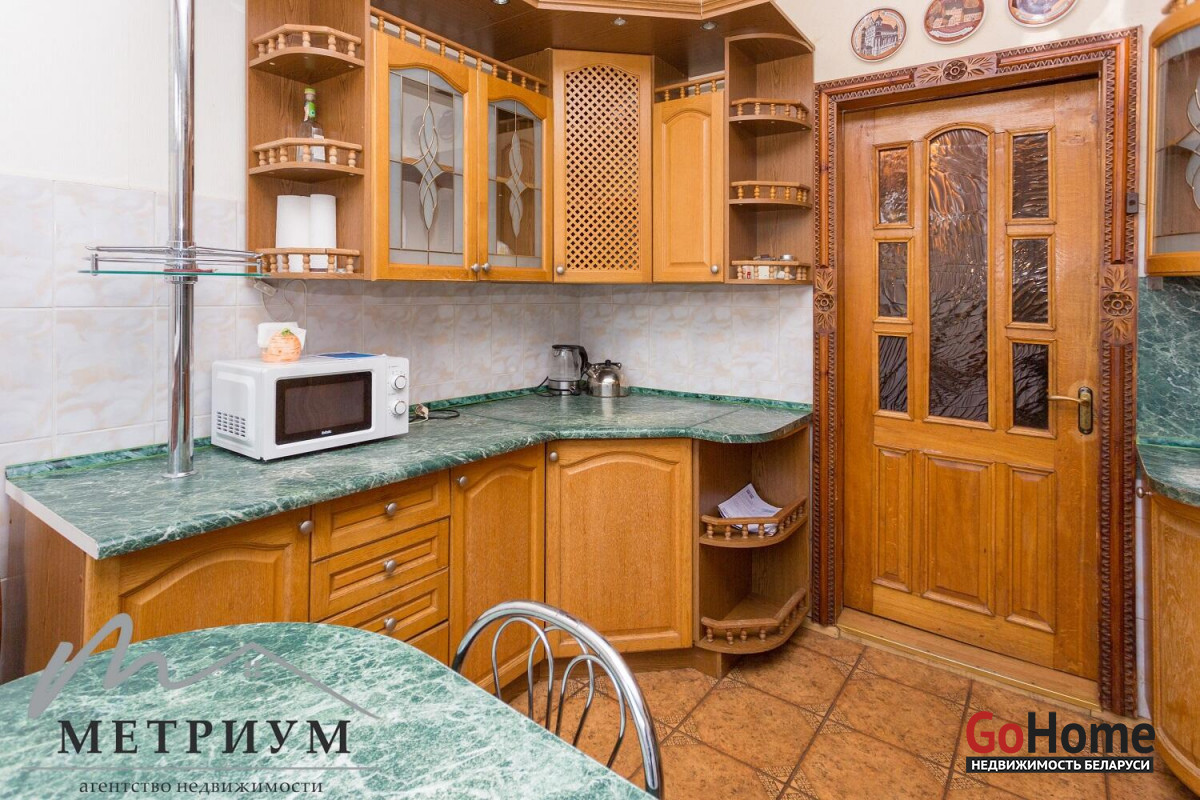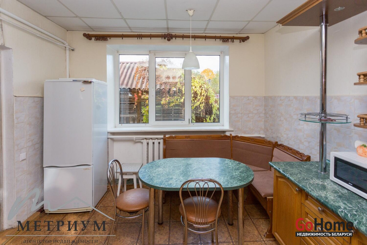 -кухня 11.5 м.кв с кухонным гарнитуром, варочная панель, духовой шкаф, холодильник. Из кухни есть выход на задний двор, к крытой беседке.