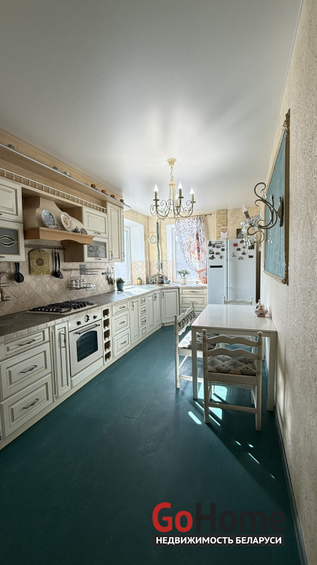 Качественный ремонт. В прихожей дорогая плитка с системой теплых полов, потолок с подсветкой, двери из массива. Сердце дома - кухня, выполнена в ретро стиле (вся мебель из массива), рабочая поверхность из керамогранита, импортная техника: газовая варочная панель, электрический духовой шкаф, посудомоечная машина - все для комфорта новых хозяев.