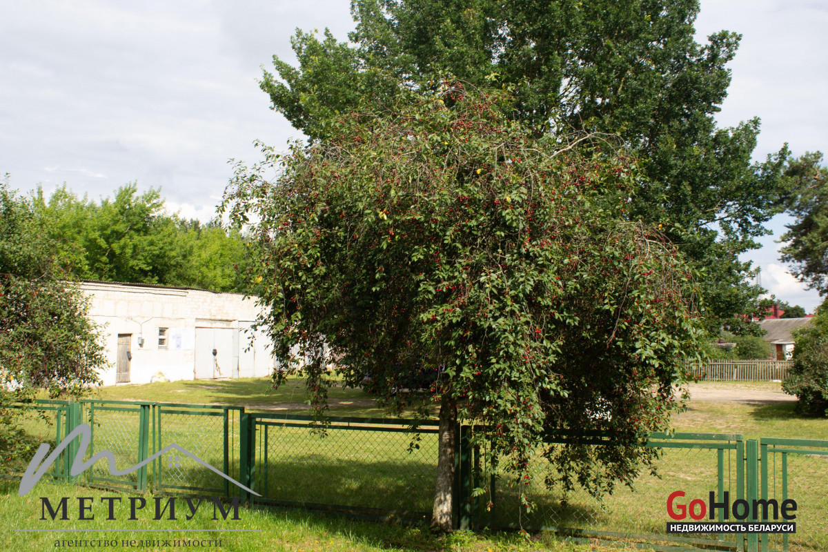 Участок ровный, правильной формы. Также рядом с домом находится зона отдыха, посажены плодово-ягодные растения: яблони, груши, вишни, есть малина, смородина, крыжовник и большой участок под огород.