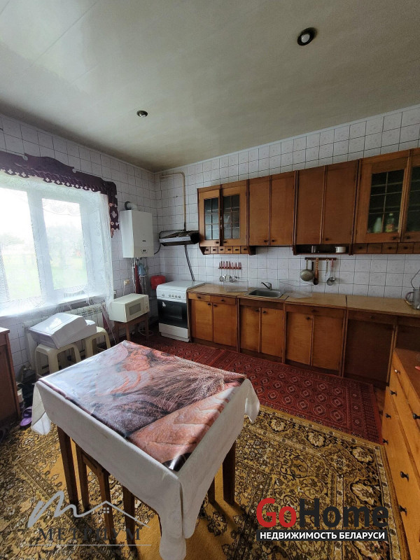 Вашему вниманию предлагаем просторный двухэтажный кирпичный дом общей площадью 132,9 кв.м., 1993 года постройки в тихом и спокойном месте г. Столбцы. Дом со всеми необходимыми для жизни коммуникациями: отопление газовое от двухконтурного газового котла, который расположен в кухонной зоне, водопровод и канализация центральные. Во всем доме установлены окна ПВХ, которые обеспечивают звуко- и теплоизоляцию и создают комфортные условия для проживания. К дому ведут удобные подъездные пути, дорога заасфальтирована.