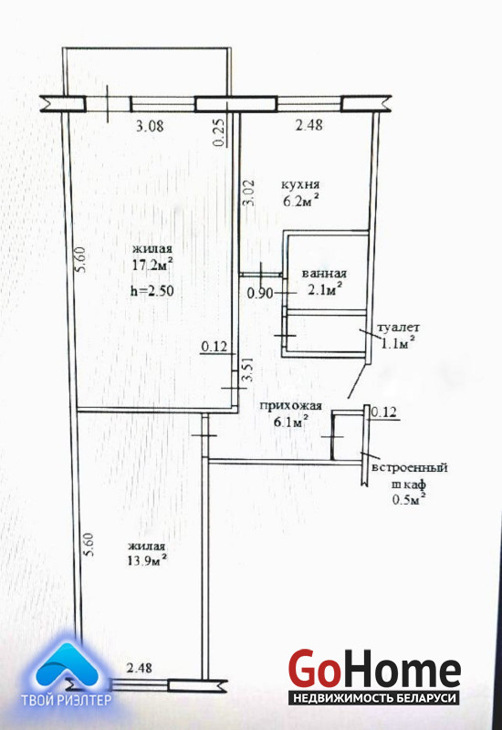 - жилое состояние квартиры, без ремонта по современным стандартам;