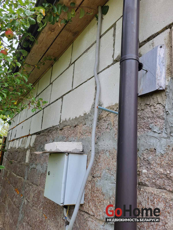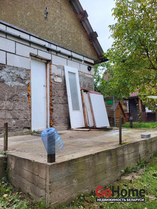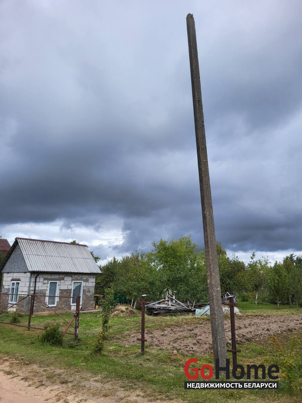 Дом 20 м.кв.(5*4). Год постройки 2018г. Подведено (официально) электричество. Есть дополнительная площадка под недостроенную кухню с выводом под воду. Со стороны дороги установлен каркас забора. Металлопрофиль зеленого цвета есть в наличии. Дополнительно есть наружный стайдинг для обшивки дома.
