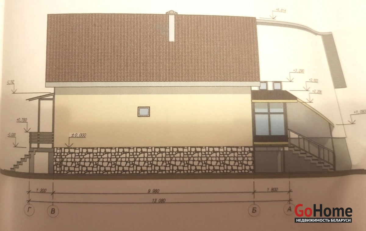 Параметры дома позволяют сделать очень привлекательную квартиру, кроме большого цокольного этажа (хозяйственное помещение 27,5 кв.м., котельная 17,6 кв.м.), первого – 43,0 кв.м., есть еще и мансардный этаж.