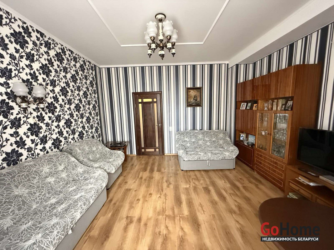 Функциональная и удобная планировка квартиры: общая площадь - 54.9 метров квадратных, жилая – 36,3 метров квадратных, кухня - 6.2 метров квадратных. Высота потолков – 3 метра. Подогрев воды осуществляется газовой колонкой. Квартира после ремонта. Металлическая входная дверь. В коридоре установлен шкаф-купе. Санузел совмещен, облицован плиткой. В комнатах на полу – ламинат, в кухне – линолеум. Оконное остекление осуществлено энергосберегающими стеклопакетами. Рядом с домом - наличие хоз. помещения с погребом. Большая придомовая территория, обнесенная забором, с зоной отдыха и участками земли под грядки.