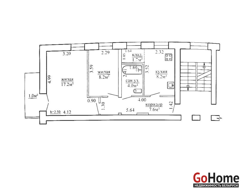 Общая площадь квартиры – 47 кв. м., жилая – 25 кв. м., площадь кухни – 8 кв. м. В квартире две изолированные комнаты 17 и 8 кв. м. Санузел совмещенный. Высота потолков – 2,5 м. Есть балкон. Установлена газовая колонка. Косметический ремонт – заменены окна, на полу уложен ламинат, стены оклеены обоями, потолки – гипсокартон с точечным освещением.