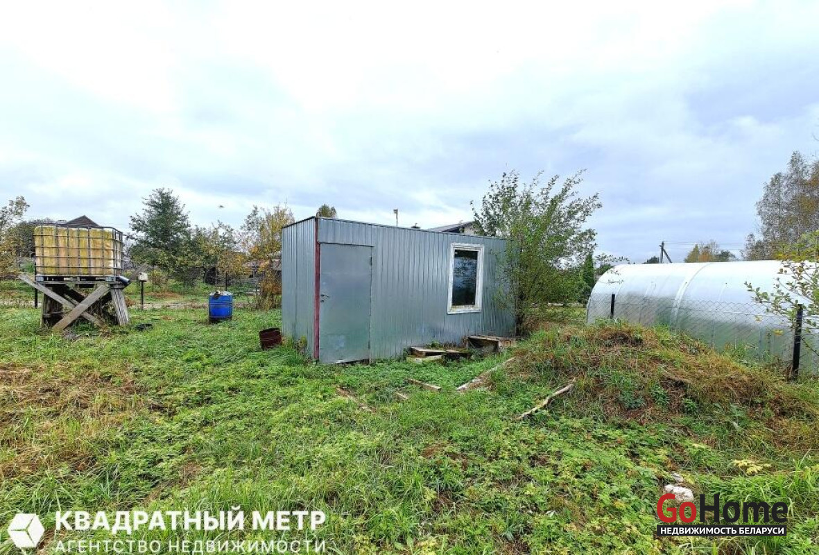 На участке имеется бытовка, обустроенная под временное проживание, и остатки строительных материалов.