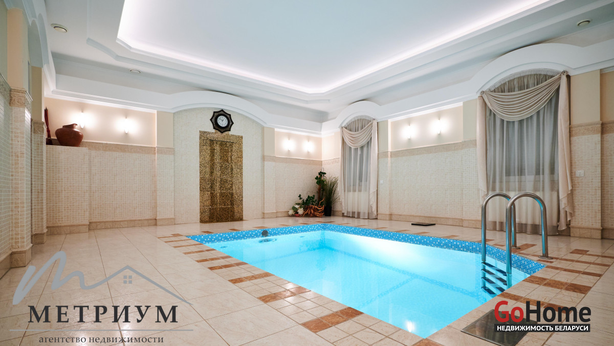 В большом доме есть зона СПА + сауна, тренажерный зал, бильярд, гостиная, столовая, 10 комнат, подземный гараж на 2 машины.
