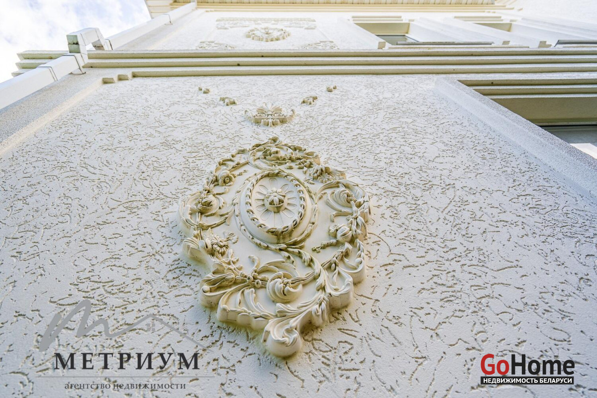 Белые торжественные фасады украшены лепниной и декоративными панно, которые диктуют дому стиль и придают индивидуальности.