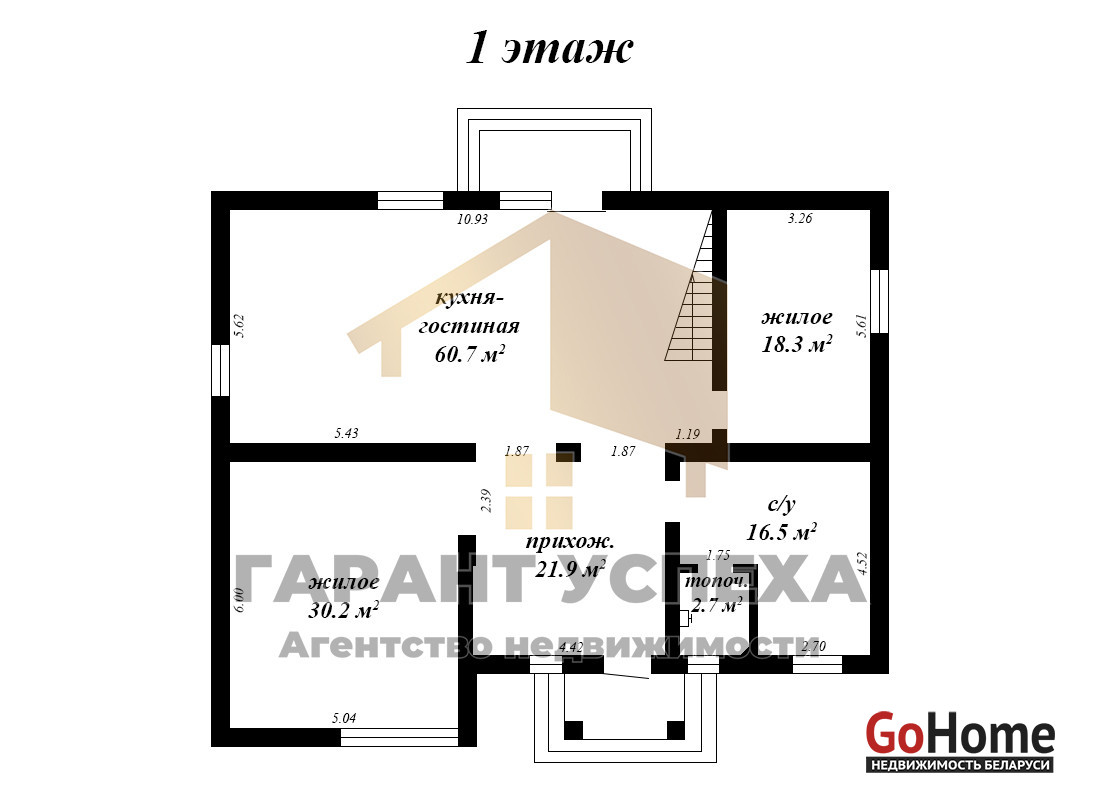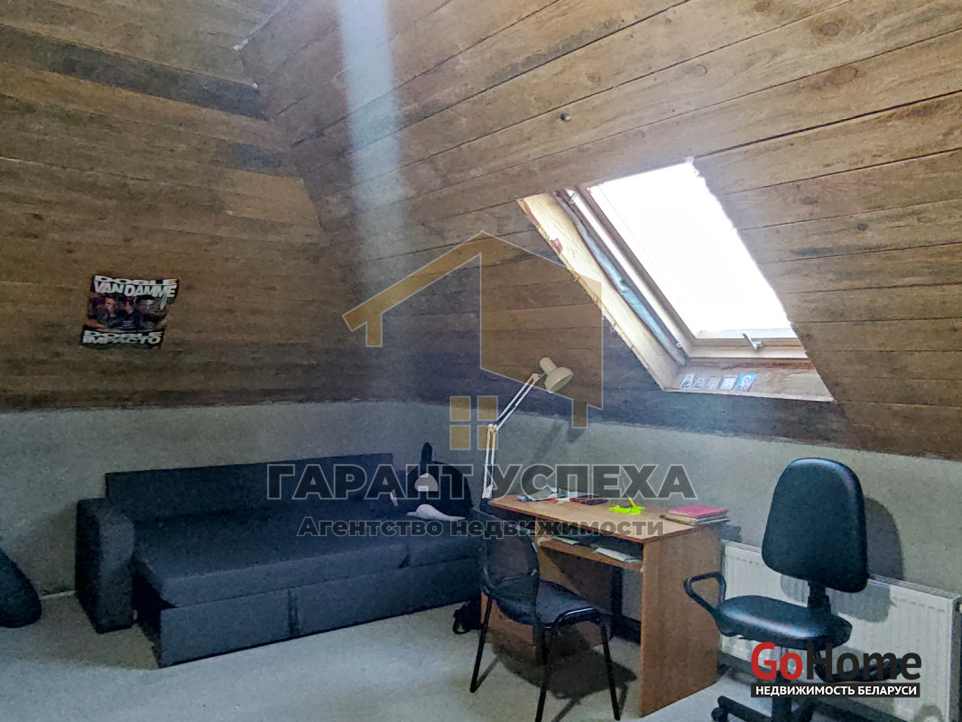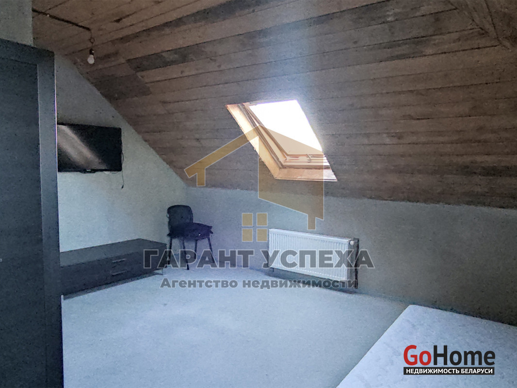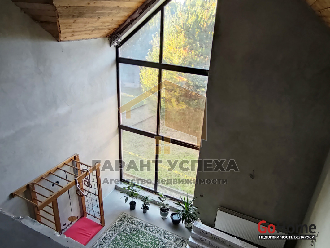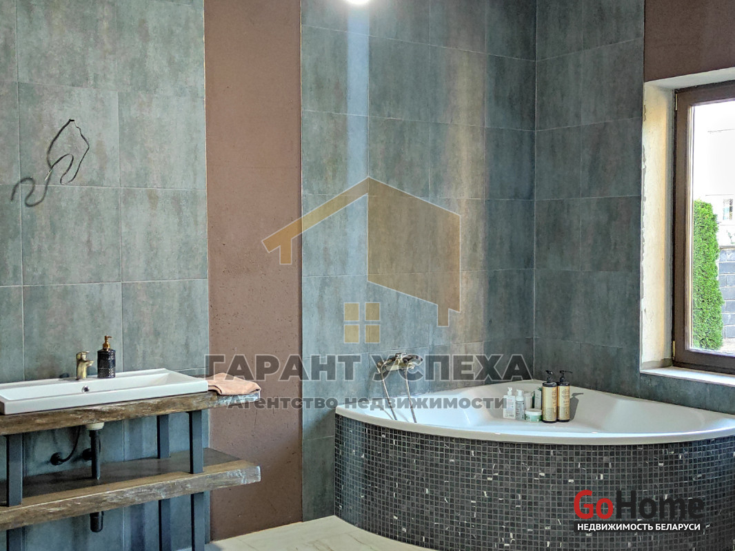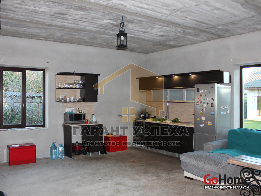 Продаётся жилой дом 2015 года постройки в агрогородке с развитой инфраструктурой. Строение дома состоит из ленточный монолитный фундамент, стены дома выполнены из газосиликатных блоков толщиной 40 сантиметров, фасад оштукатурен, уложены плиты перекрытия между этажами. Кровля выполнена из качественной металлочерепицы. Залита чистовая сяжка полов. Чистовая отделка стен не проводилась. Дом разграничен на гостевую зону – 1 этаж и зону отдыха – мансарда. Высота потолком составляет на первом этаже 3,0 метра, на мансарде 2,7 метра. Общая площадь дома - 279,4 кв.м, жил.- 124,7 кв.м, кух.- 60,7 кв.м. 5 комнат, 2 совмещенных санузла, гардеробная 10,3 кв.м.