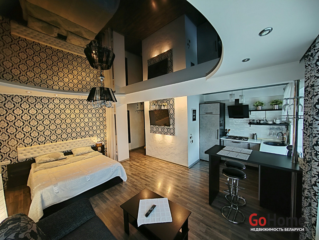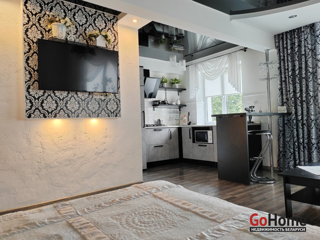 Уютная квартира-студия в самом центре города. Район площади Победы. Удобное транспортное сообщение. В шаговой доступности магазины, кафе, ресторан, банк.