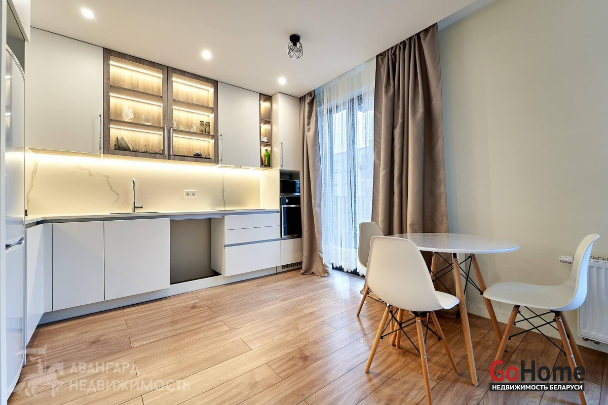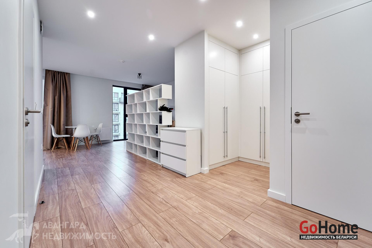 Уникальная уютная квартира-студия со стильным ремонтом и встроенной мебелью в одном из самых престижных ЖК Минска “Северный берег”
