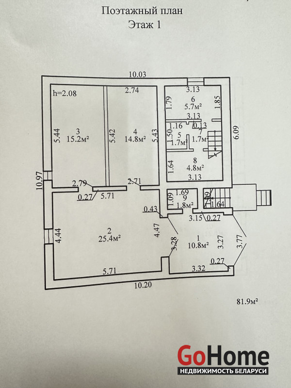 1 этаж - подвал, гараж, мастерская, котельная, туалет, ванная. 2 этаж-3 комнаты, кухня, прихожая.