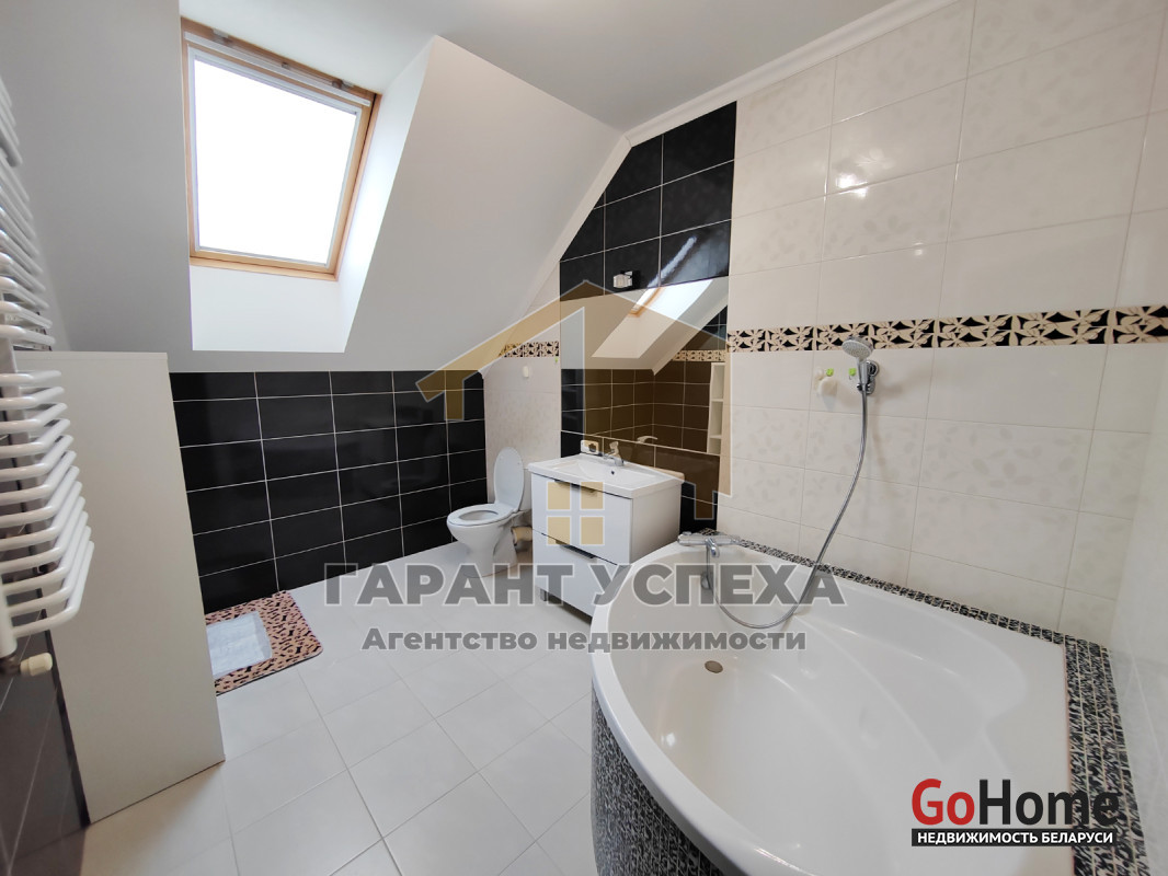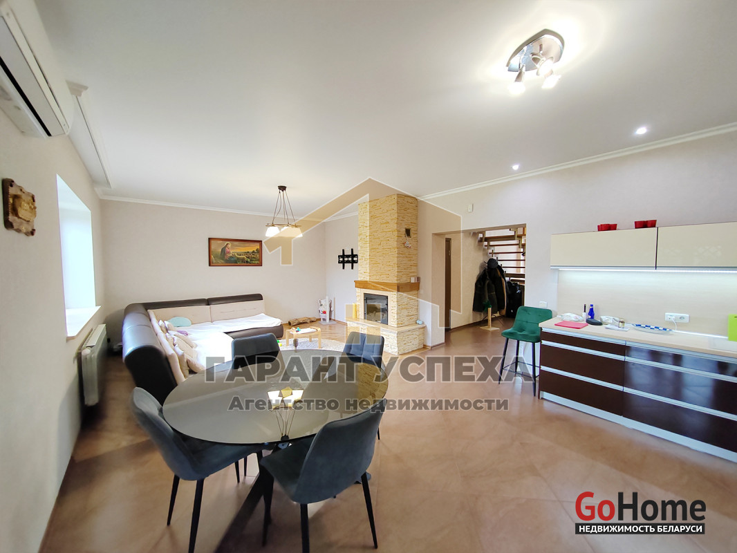 Общая площадь здания составляет 217,5 кв.м, жилая площадь составляет 96,1 кв.м. Сердцем дома по праву является кухня-гостиная площадью 38,4 кв.м с действующим камином и выходом на крытую террасу. На этом уровне также расположена жилая комната, первый совмещённый санузел, прихожая с дубовой массивной лестницей и топочная. Мансардный этаж отдан под жилую зону, включающую еще 4 комнаты, второй санузел и холл. С левой стороны к дому примыкает гараж.