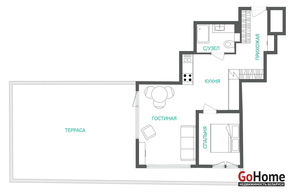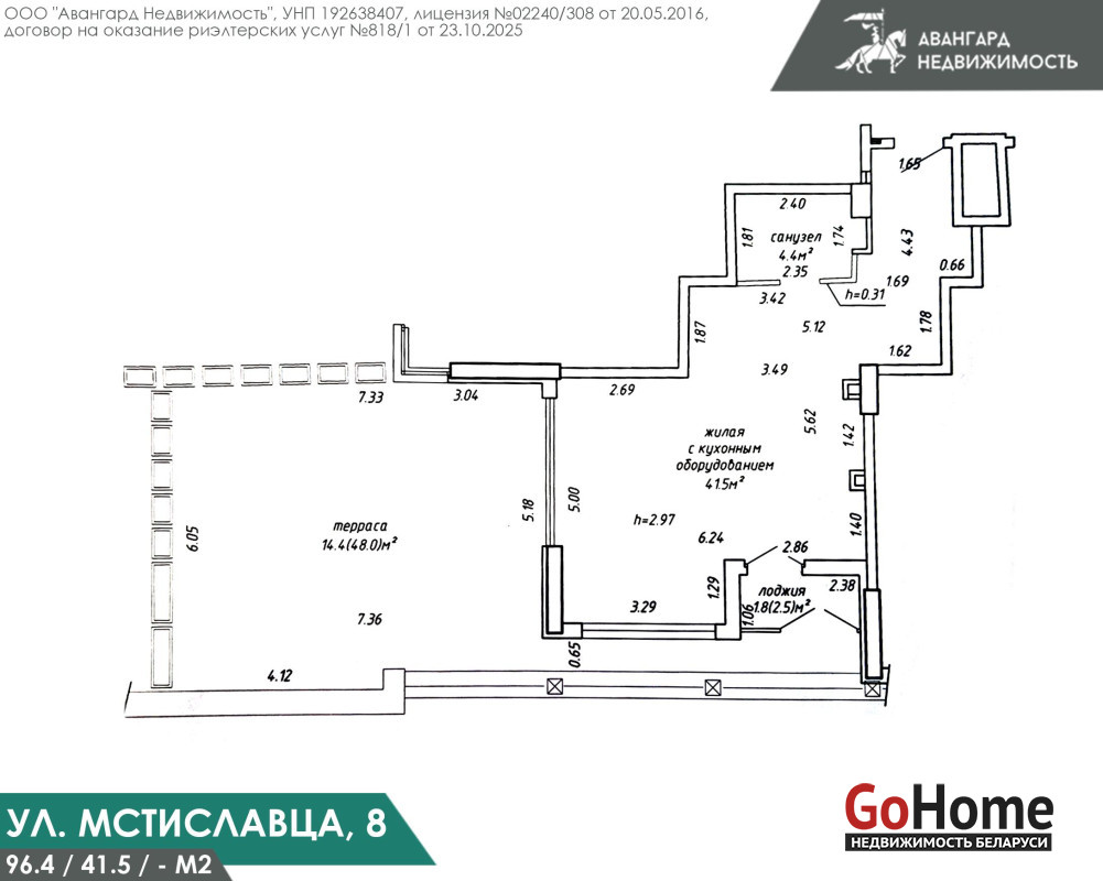 - Огромная собственная терраса с мебелью. Высота потолка 2,97м.