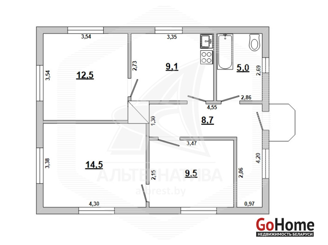 Дачный дом жилого типа в Брестском р-не. 2015 г.п. 1 этаж. Общ. - 59,3 кв.м, 3 комнаты.