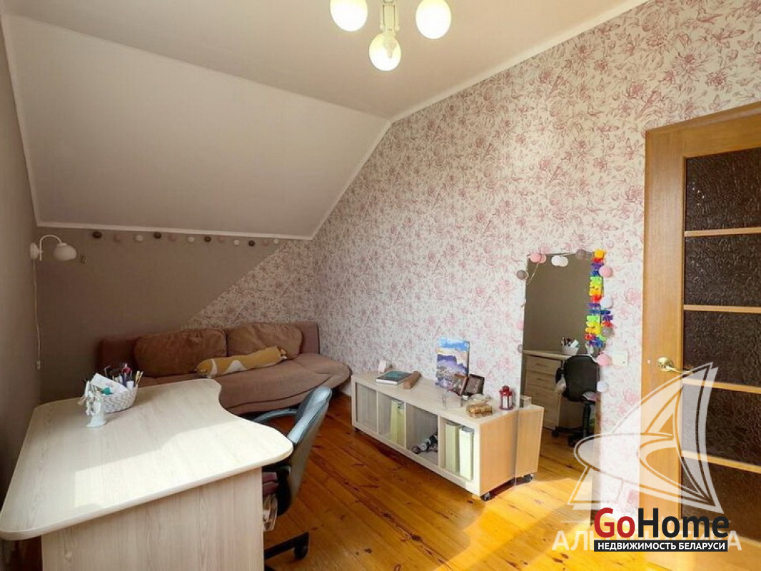 Жилой дом в г.Бресте. 1 этаж, мансарда. Общ.СНБ - 185,2 кв.м, общ.- 178,8 кв.м, жил.- 112,5 кв.м, кух.- 17,3 кв.м. 4 комнаты, высота потолка - 2,68 м.