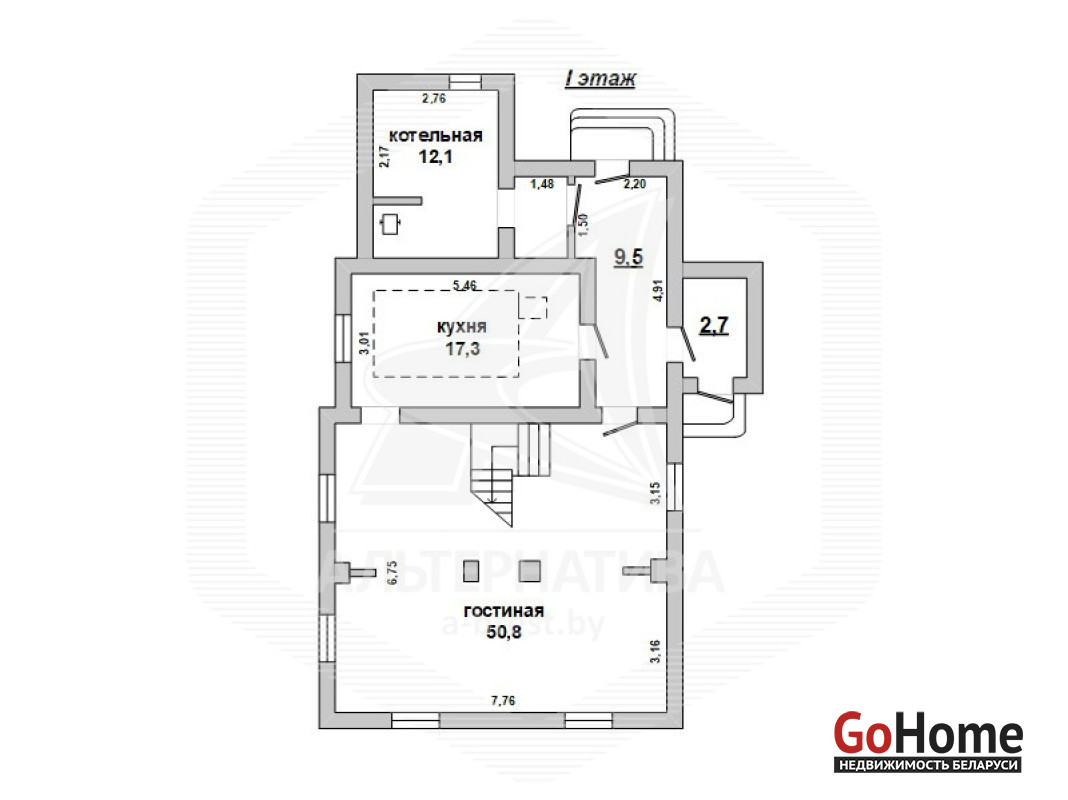 Коммуникации: отопление - газовый котел, газ - централизованный (в доме), водоснабжение - централизованный водопровод, электричество - централизованное, канализация - автономная.