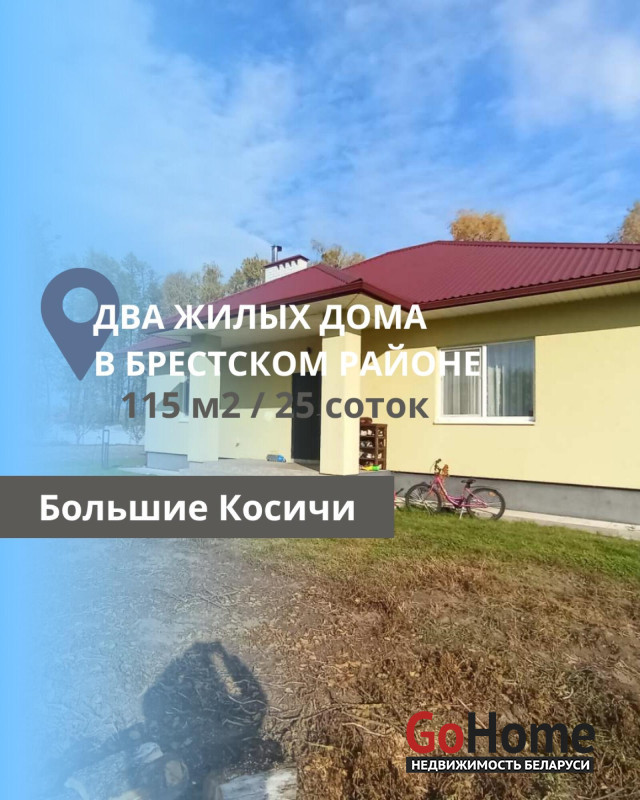Подписывайтесь на наш instagram @ecrzby для удобного слежения за новыми актуальными объектами. Продается два жилых дома, расположенных Чернинский с/с Брестский район деревня Большие Косичи. Площадь дома 115 кв.м., жилая 71кв.м. построен 2018 году. Выполнен современный ремонт, готов к проживанию. Второй дом общая площадь 54.5кв.м., жилая 41.6 кв.м. Участок 25 соток, имеются хозяйственные постройки. Коммуникации: электричество есть, отопление котел на твердом топливе, вода скважина и колодец, газ балон, канализация местная. Хорошее транспортное сообщение с городом.