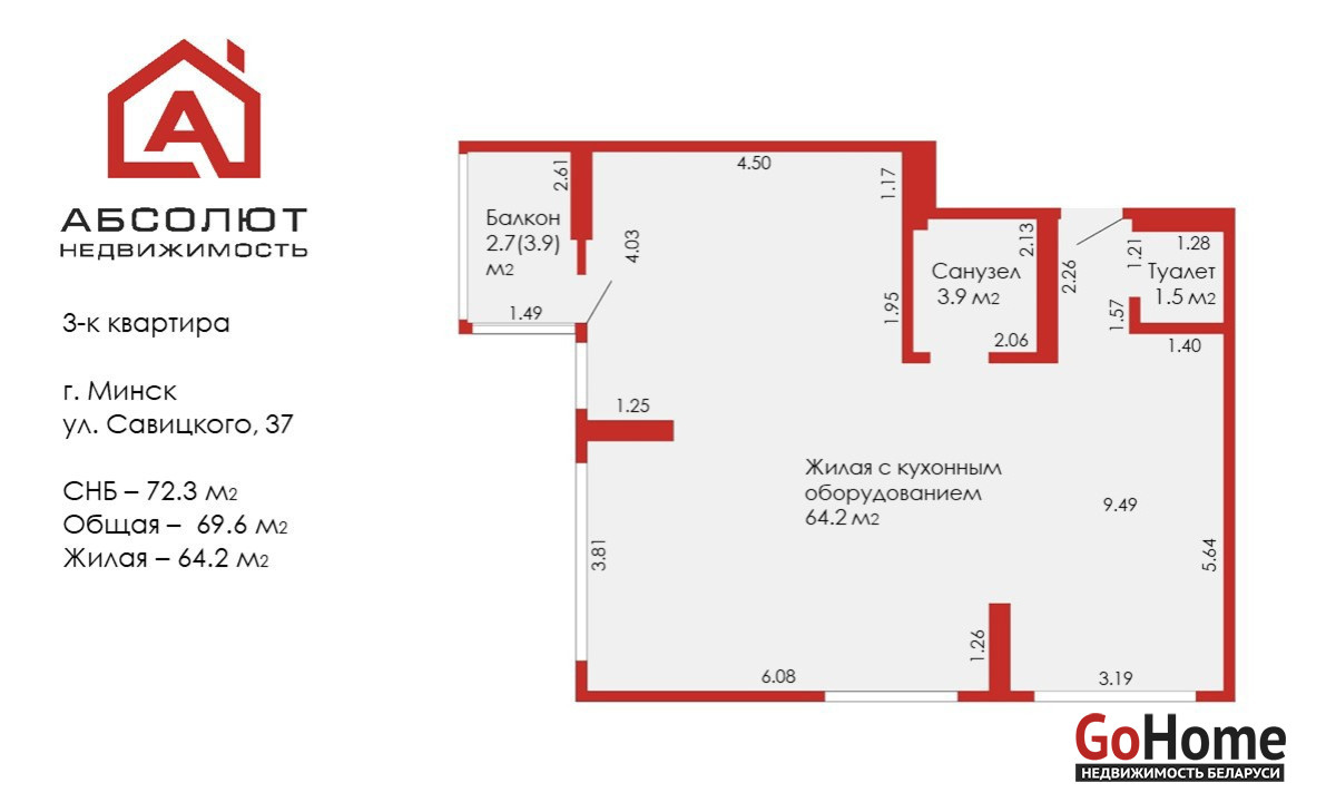 Площадь указана по СНБ.