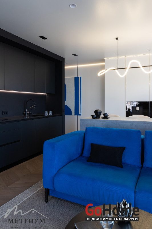 Просторная кухня-гостиная полностью укомплектована: премиальная отделка - все стены идеально подготовлены и покрашены, на полу - паркет “ёлочка” от Coswick, зонирование пространства светом. Встроенная бытовая техника: варочная панель Electrolux, кофемашина Bosch, микроволновая печь Bosch, посудомойка Haier. Площадь квартиры - 57.2 м2. Высота потолков 2.7.