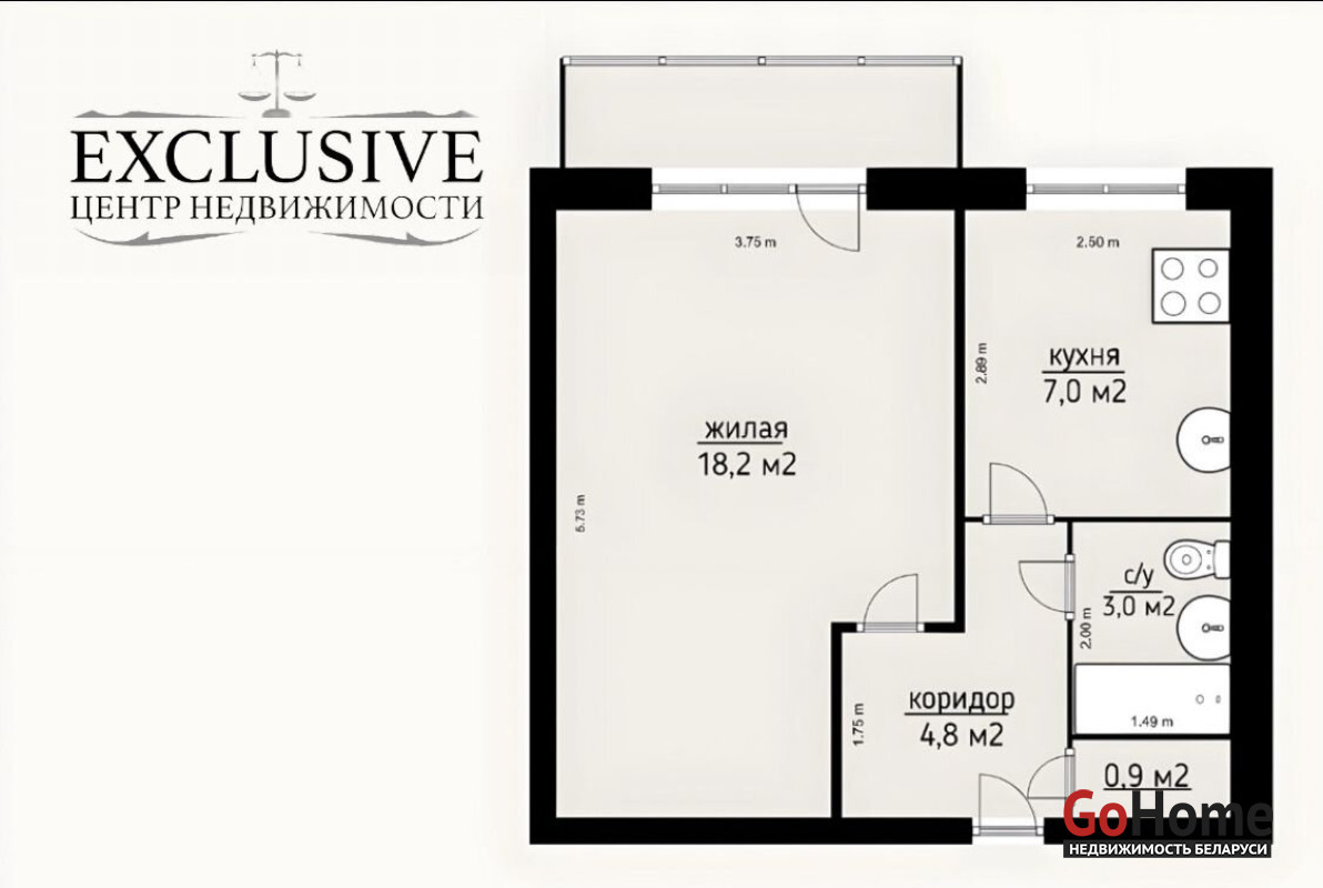 - Общая площадь квартиры составляет 33,8 кв.м., жилая - 18,2 кв.м., а кухня площадью 7,0 кв.м. позволит вам с комфортом готовить и проводить время.