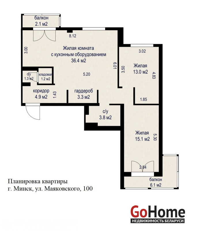 Трехкомнатная квартира 85,4 м2 с отличным видом на реку Свислочь, расположенная на перекрестке ул. Маяковского 100 и Денисовская