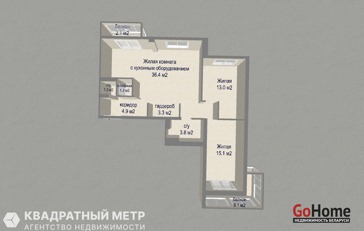 1. Отличная планировка: общая площадь по СНБ – 85,4 м2, жилая площадь 67,8 м2, большие лоджии - 6,1 м2 и 3,0 м2,