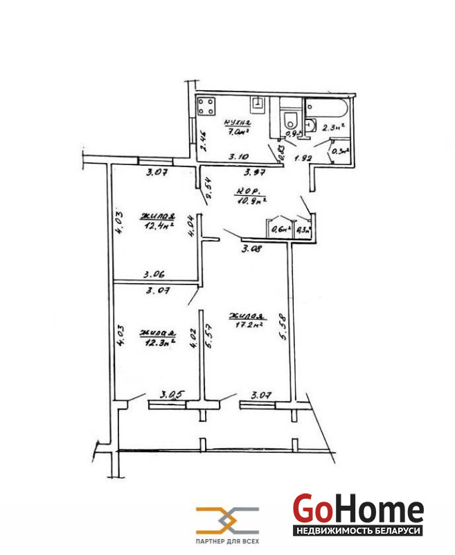 Удобная планировка, кухня 7 м2. Площадь квартиры по СНБ 68.5 м2.