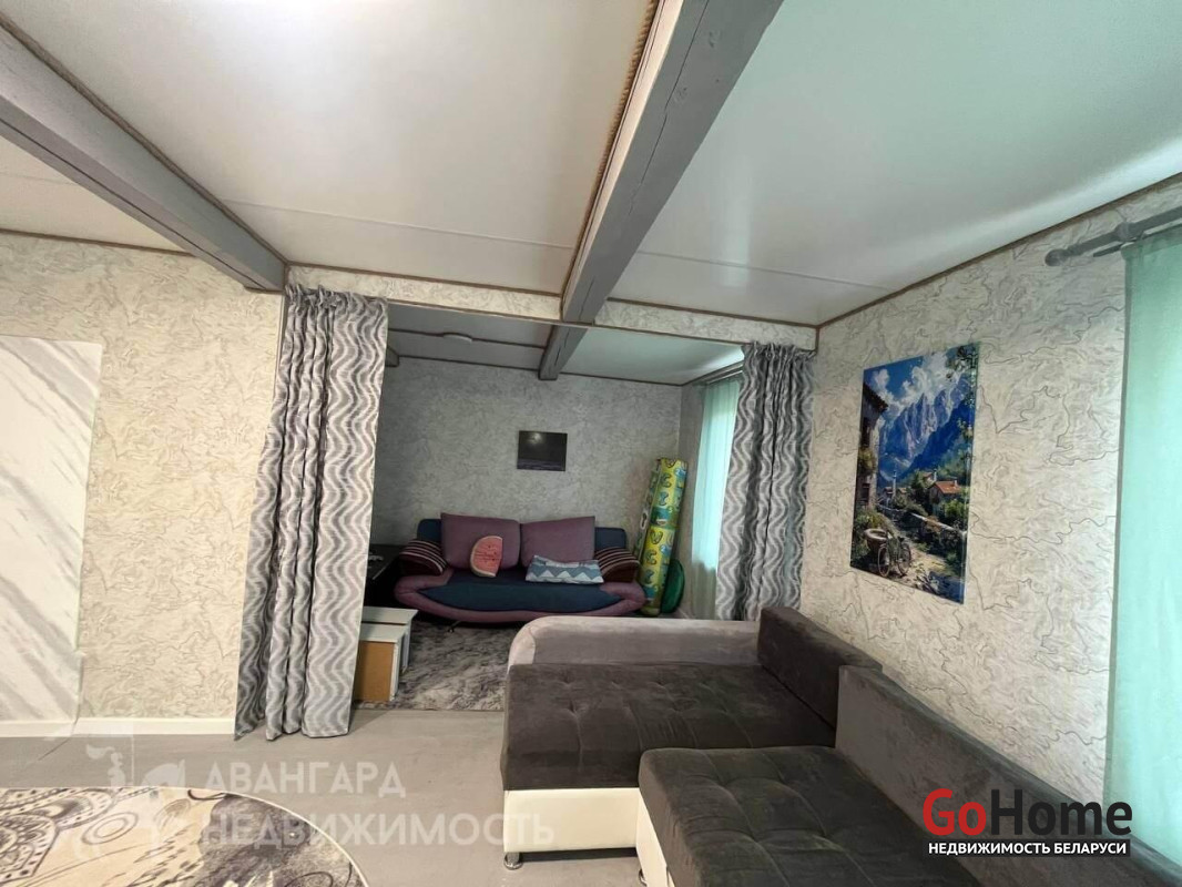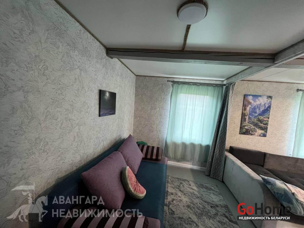 Продается уютный дом в деревне Емельянова, участок ровный 14,86 сотки огорожен забором со всех сторон. Асфальтированная дорога проходит по улице. Есть парковка на 2 автомобиля. Коммуникации: центральное водоснабжение, оптоволокно, газ заведен в дом. Имеется газовый котел, печь. Душ, бойлер, туалет в доме. Канализация местная (септик). Проведена новая проводка. Современный, свежий ремонт. Окна стеклопакеты. Кровля шифер. Сад с плодоносящими деревьями и кустарниками. Рядом находится П. Усяж в которой находится садик, школа, магазины и т.д., а также ходят автобусы и маршрутки. До Минска 30 км по ровной асфальтированной дороге. Рядом находится лес и Смолевичское водохранилище – это отличные места для прогулок, рыбалки и отдыха на свежем воздухе.